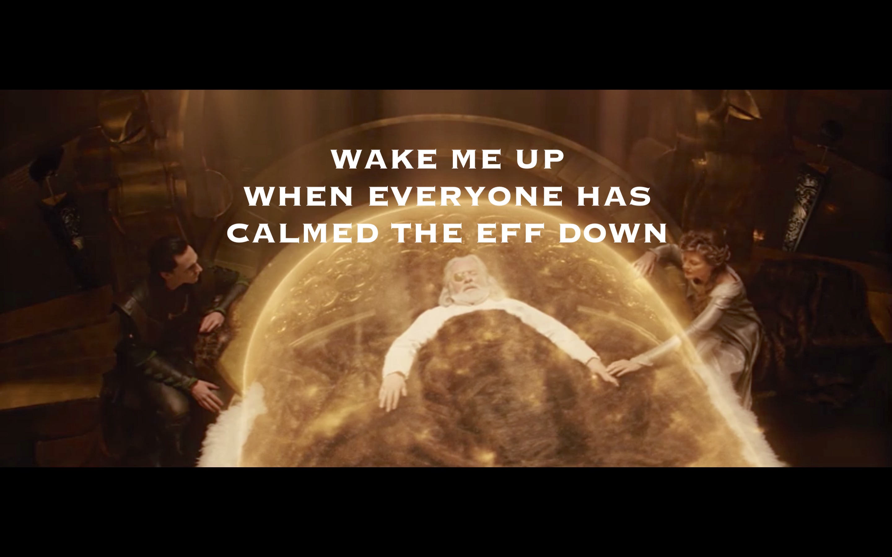 The Odin-sleep is apparently something he does every now and then, but this time it was unplanned, so it’s more dramatic. And since Thor is grounded, Loki made himself King, which went over suuuuuuuper well with everyone.