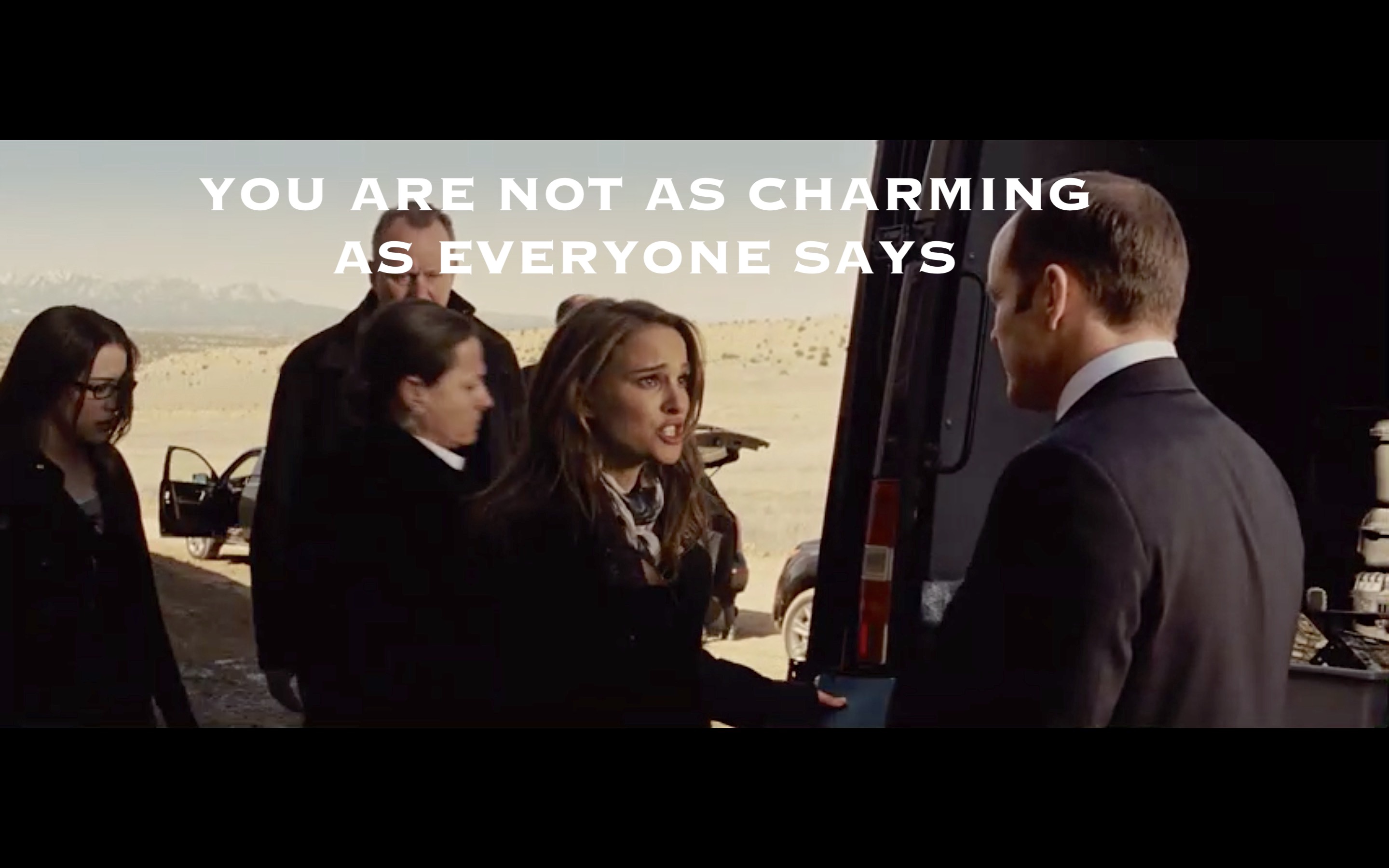 What was this scene about? I could not tell you. I do know that they part ways and Thor kisses Jane’s hand and she giggles like a schoolgirl, which was very endearing.