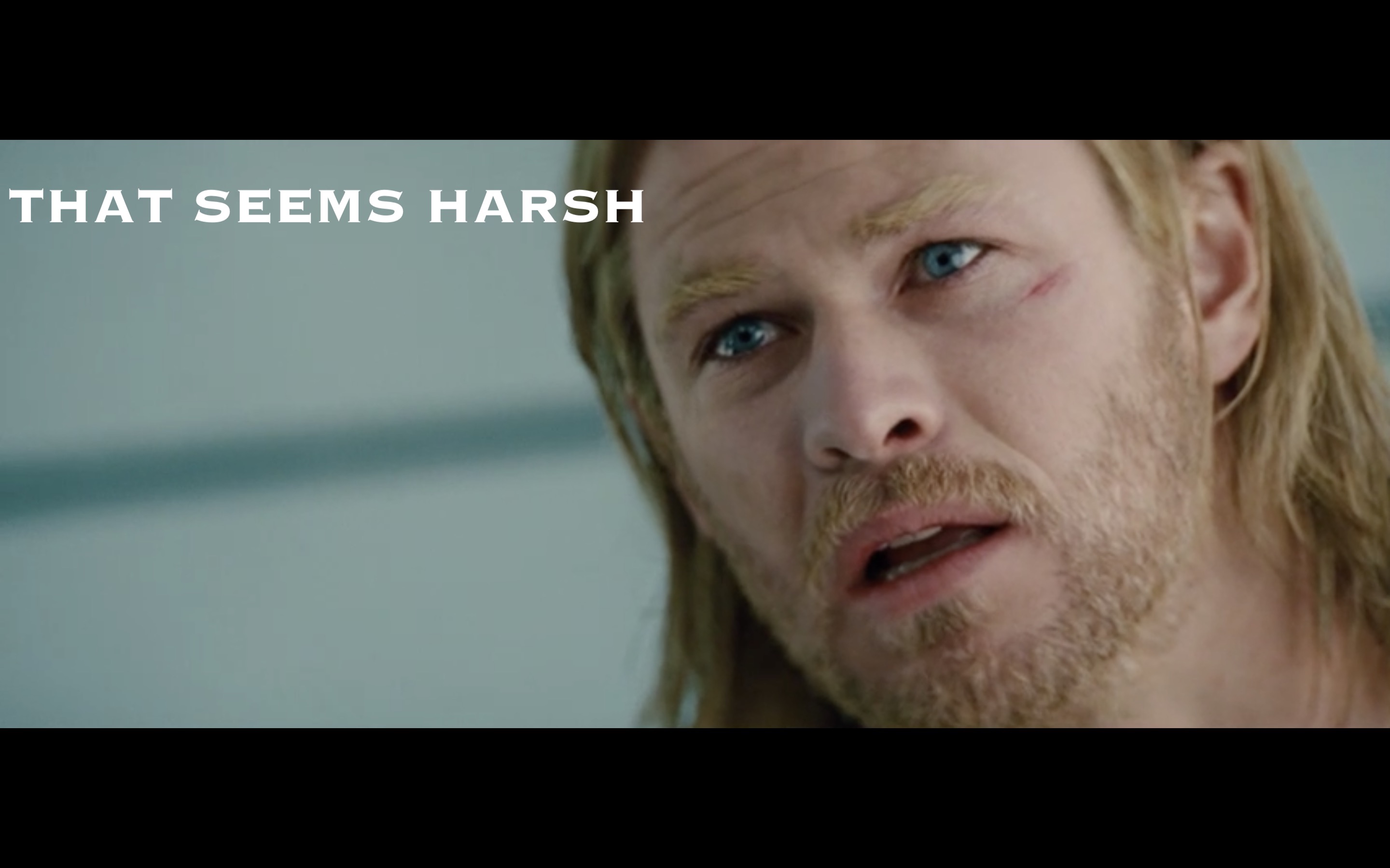 - I absolutely love that Thor is kind of a dummy. Part of me wonders if this was intentional to balance the scales. Thor is a literal God. He’s too powerful to fit into the team. I think they had to make him a bit of a doof so audiences wouldn’t take him too seriously; so we wouldn’t start to wonder why every problem wasn’t solved with a swing of his mighty hammer.