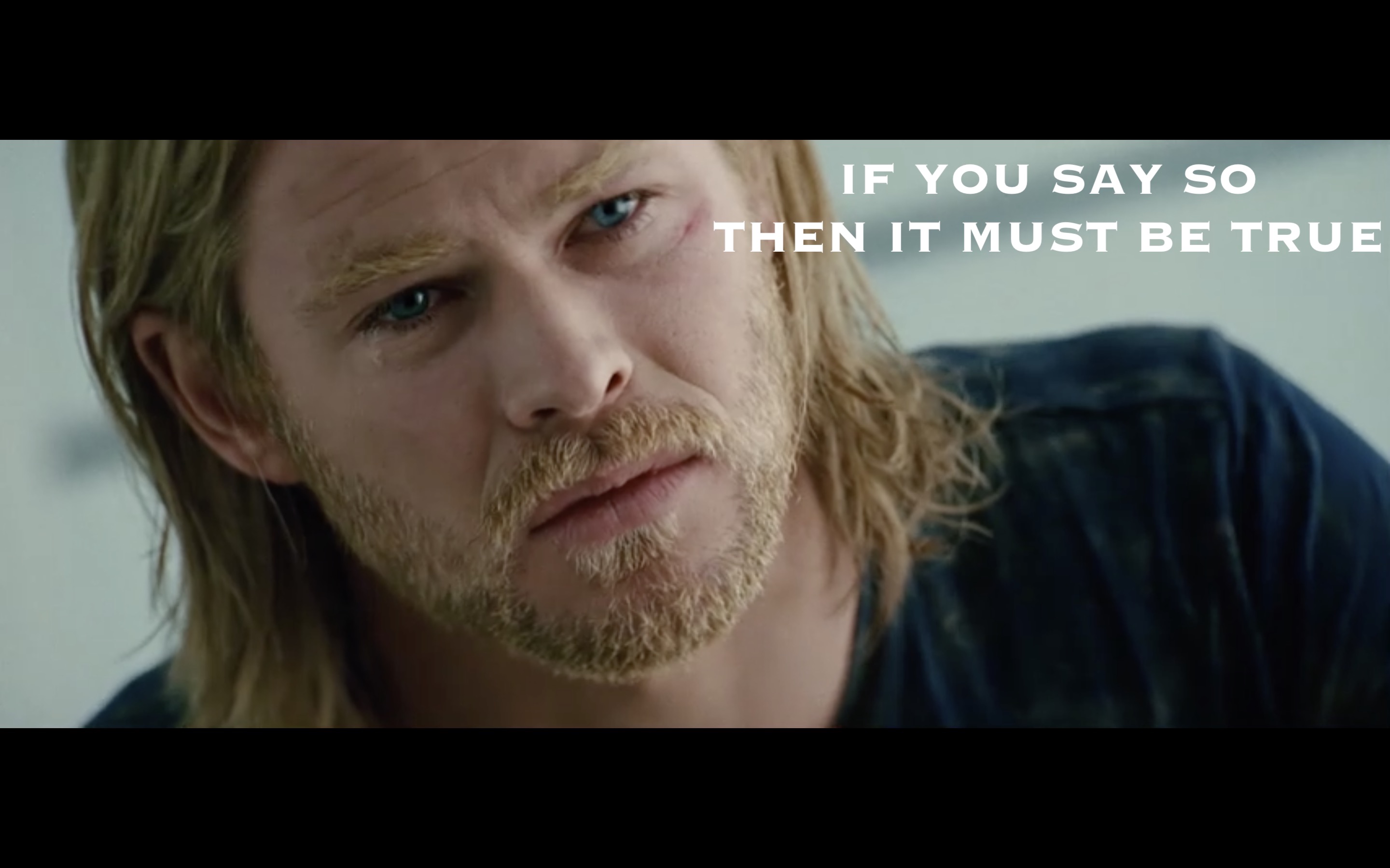 The movie began with an introduction to Jane Foster, a beautiful astrophysicist with spunk, Dr. Selvig, a… science doctor I guess, and Darcy, the intern. They’re doing a whole whack of smart things when a storm comes and they drive into it for science, accidentally clipping a hunk with their car.