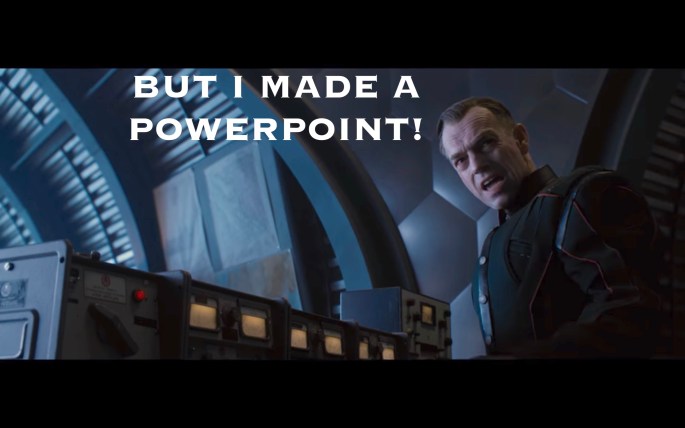 So Steve was chosen, and given a charming pep talk about why he was chosen from Dr. Stanley Tucci that boiled down to; “you’re not a douche.” He also mentioned some Nazi soldier who underwent the same treatment, and how he WAS a douche, so it went badly. And Steve was like, ‘does this seem like the right time to tell me about how this experiment once went horribly wrong?” (in my head) and Stanley Tucci was like, “I’m sorry, the audience needed to know,” (also in my head).