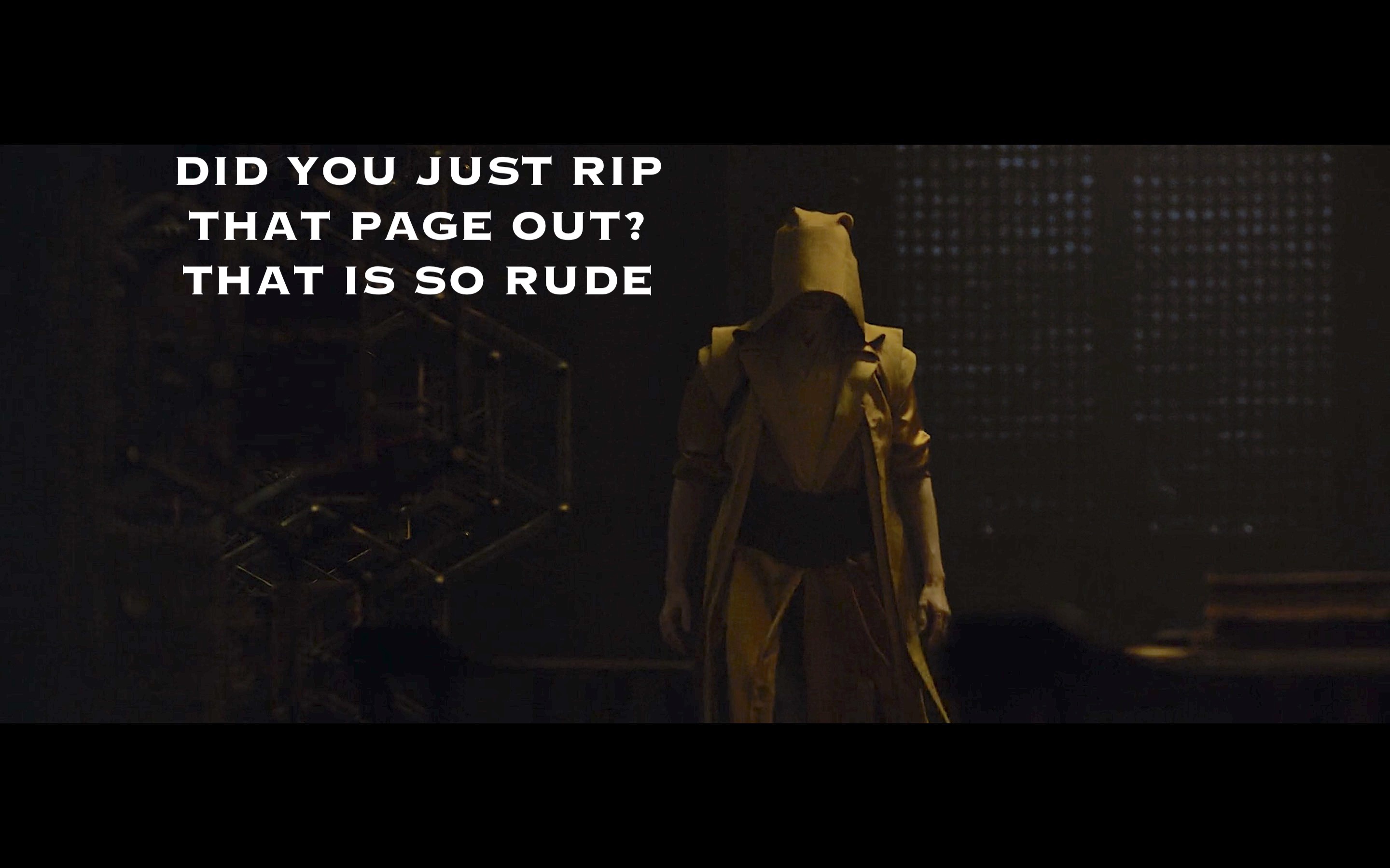 The movie opened with a quick beheading, and our bad guy ripping pages out of a book like it was in a public telephone booth.