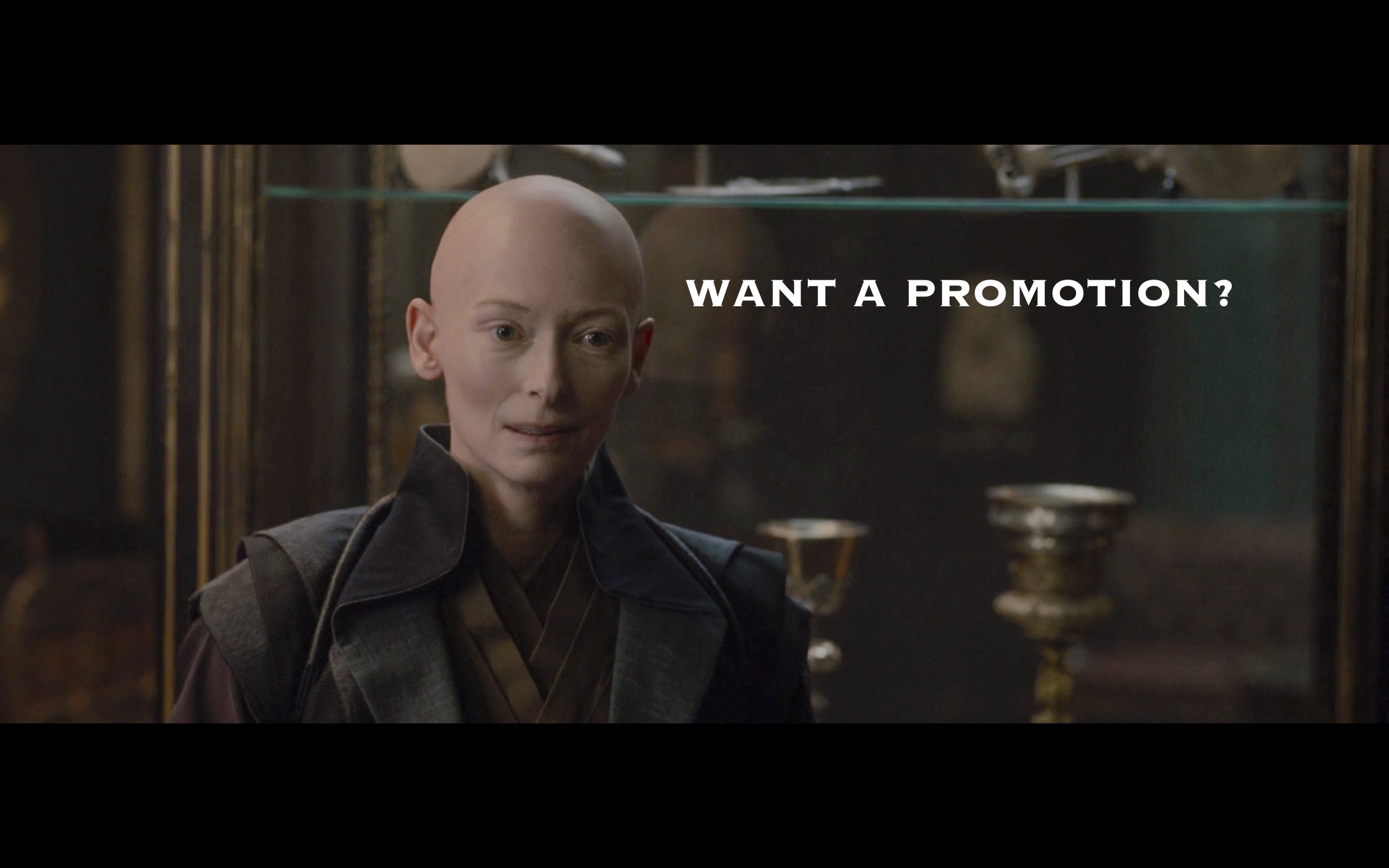 She gave him a pep talk that boiled down to, “don’t be a dick,” then promptly died. So now it was up to him, Mordo, Wong, and all the other unnamed red-shirt Wizards to save the world from an evil being set on sucking it into darkness.