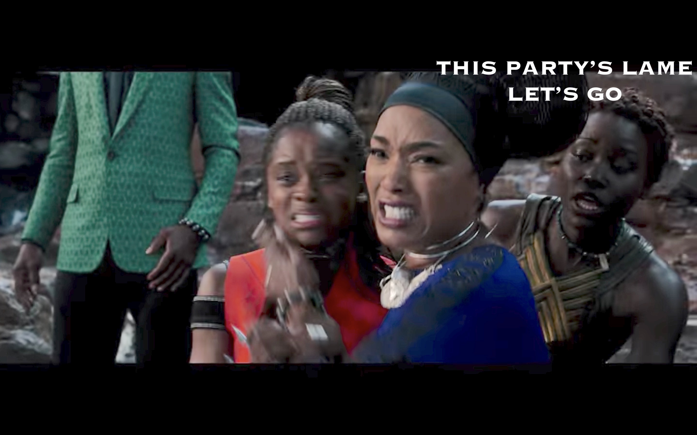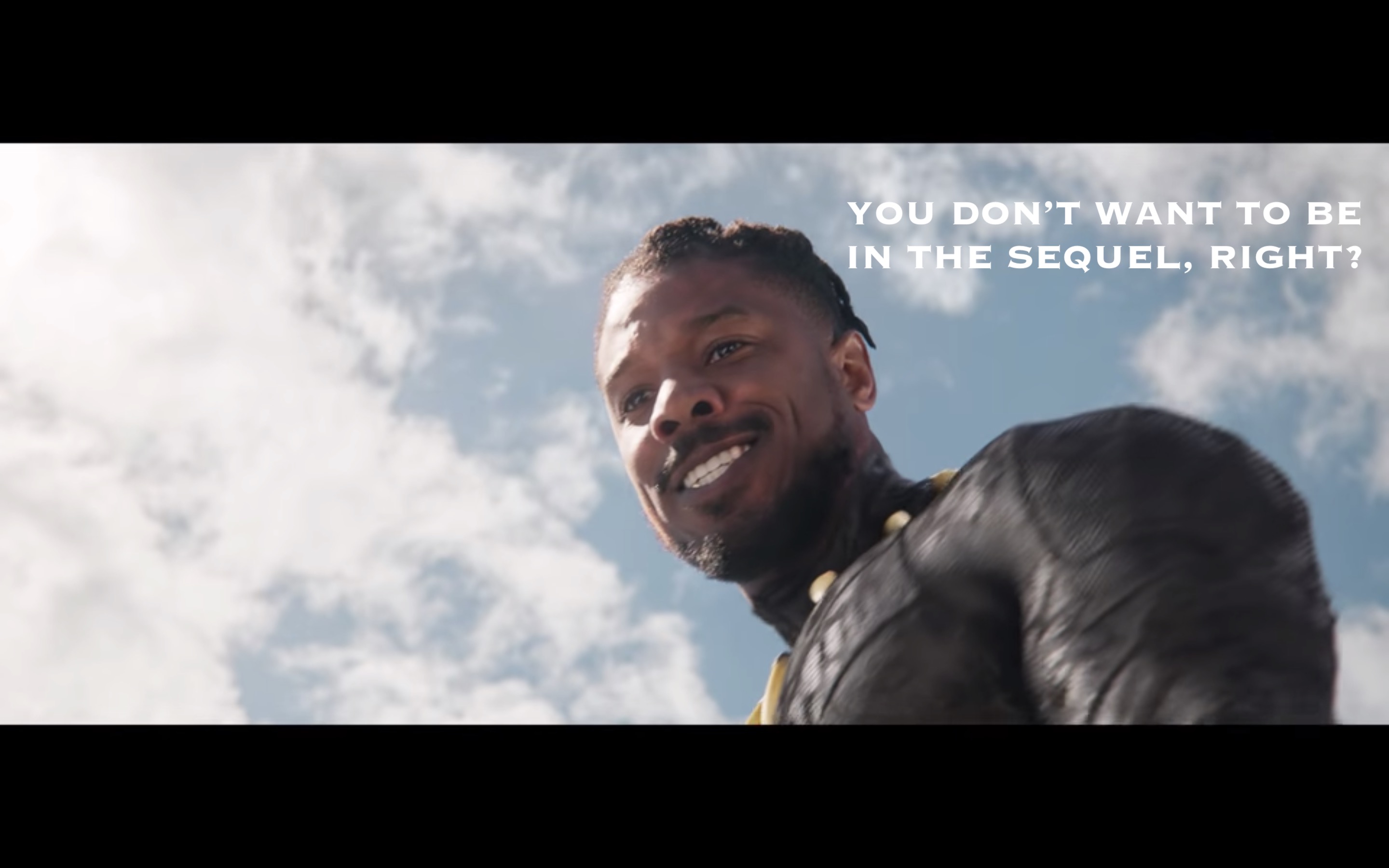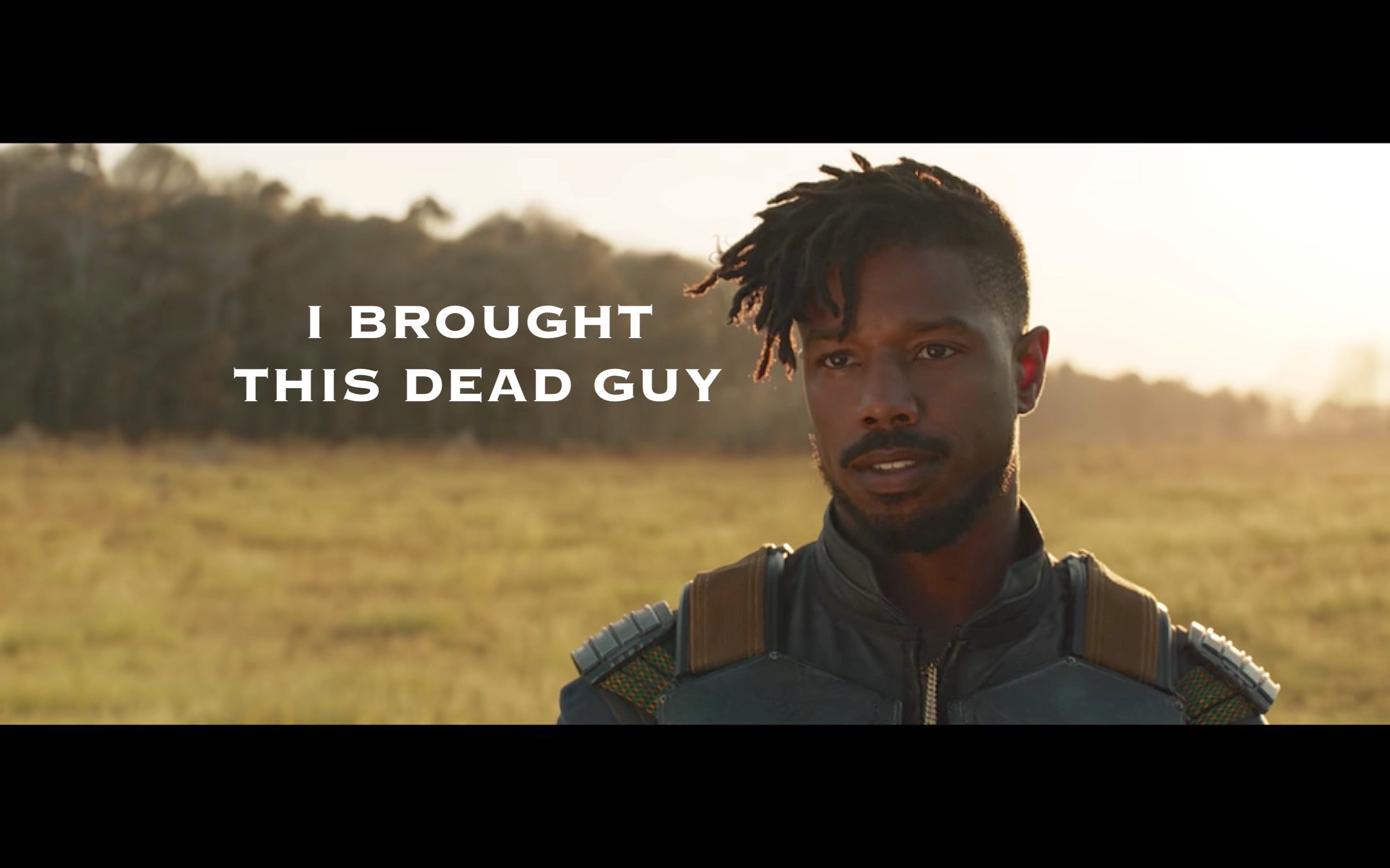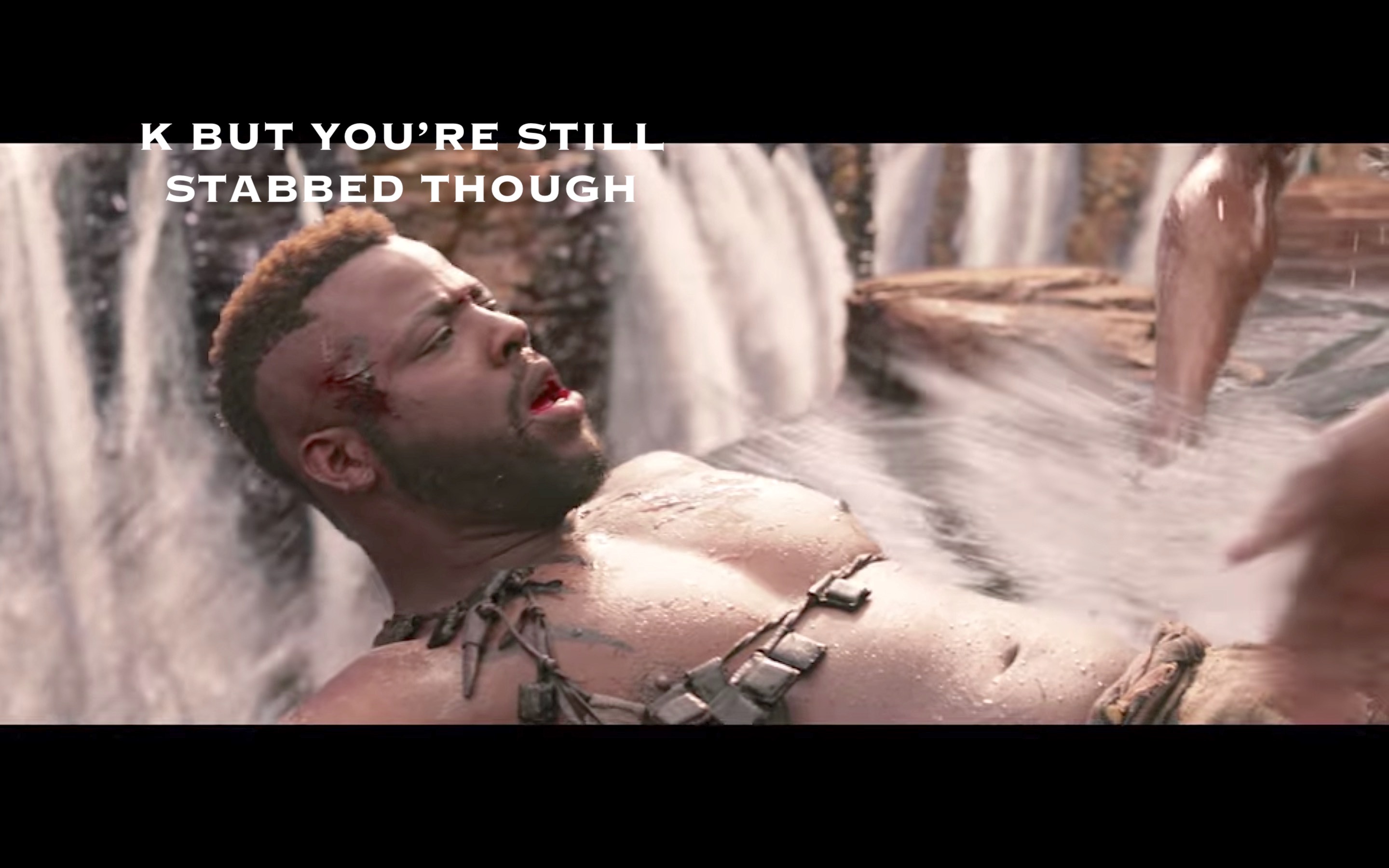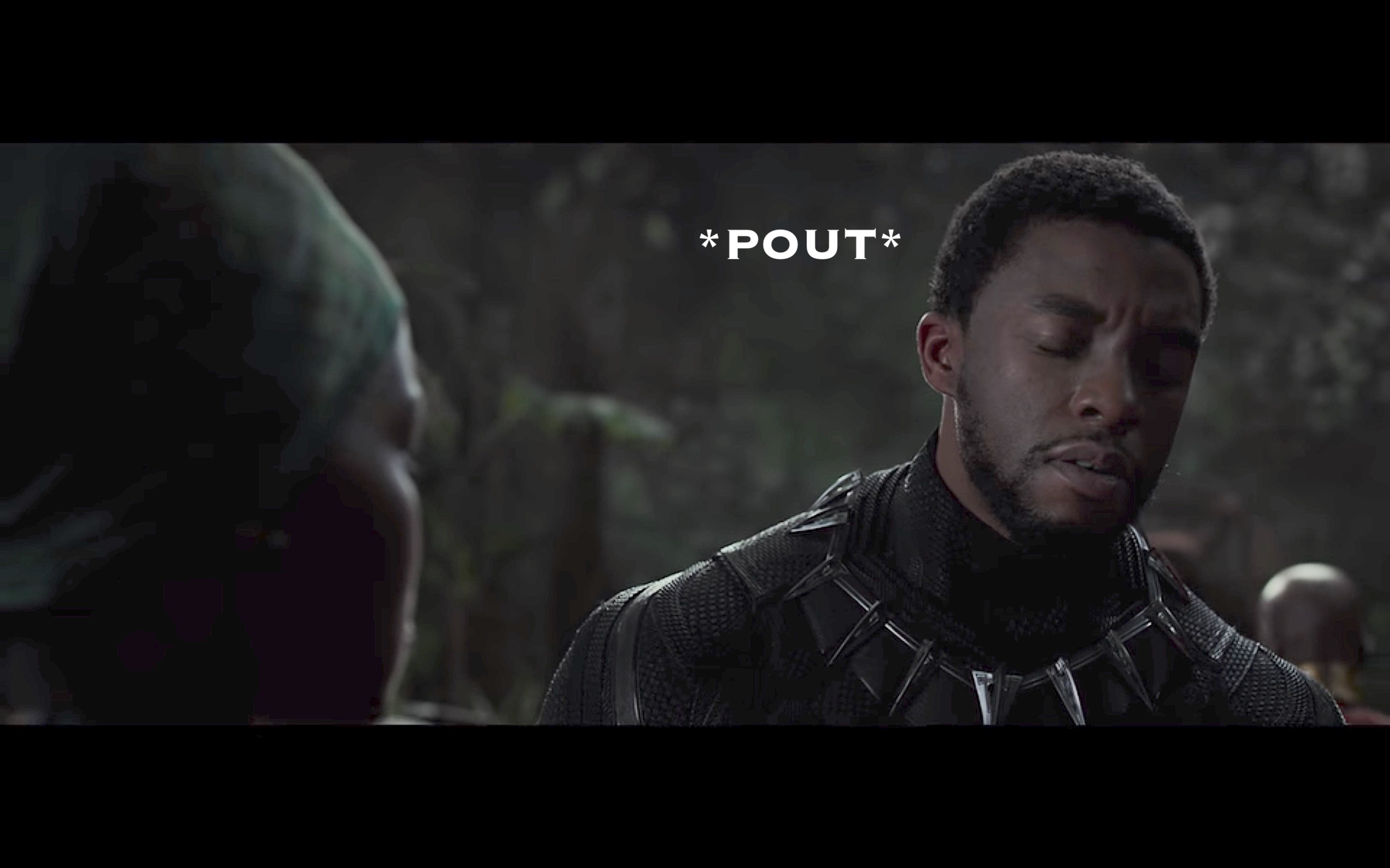 The CGI fight ended with T’Challa stabbing Erik in the general body area. This lead to a very nice cousin bonding sesh where our boy carried Erik to a cliff to watch the sunset and they talked about their hopes, dreams, crushes, and favourite ice cream flavours.