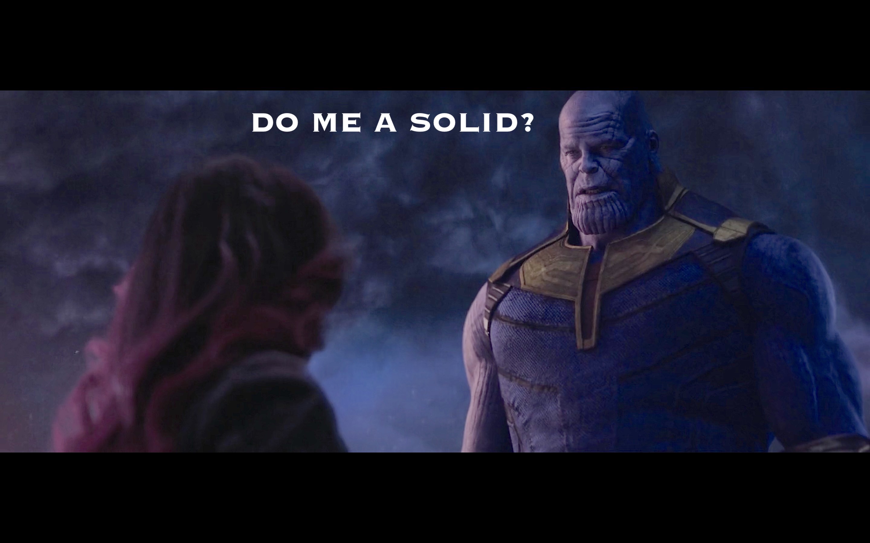 The remaining Guardians made it to Knowhere ‘just in time’ to stop Thanos from getting the Reality Stone from the Collector. OR DID THEY??? It was all subterfuge! After Gamora killed Thanos, he was all, “wow, good job, hun!” and it was revealed that he already HAD the Reality Stone, and could make reality whatever the heck he wanted. Why he didn’t instantly turn his surroundings into an ice cream shop is honestly beyond me.