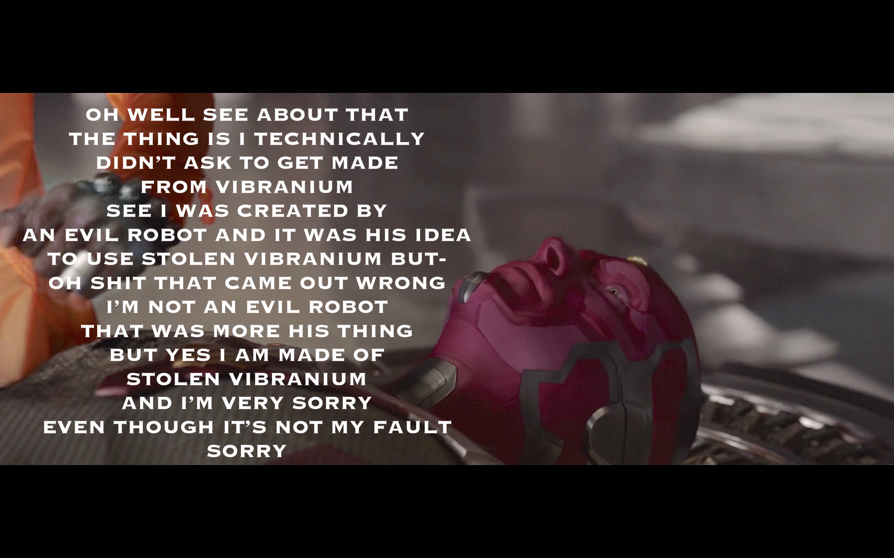 - Vision was IN WAKANDA, and NO ONE awkwardly brought up the fact that he was made of stolen vibranium, even in passing???