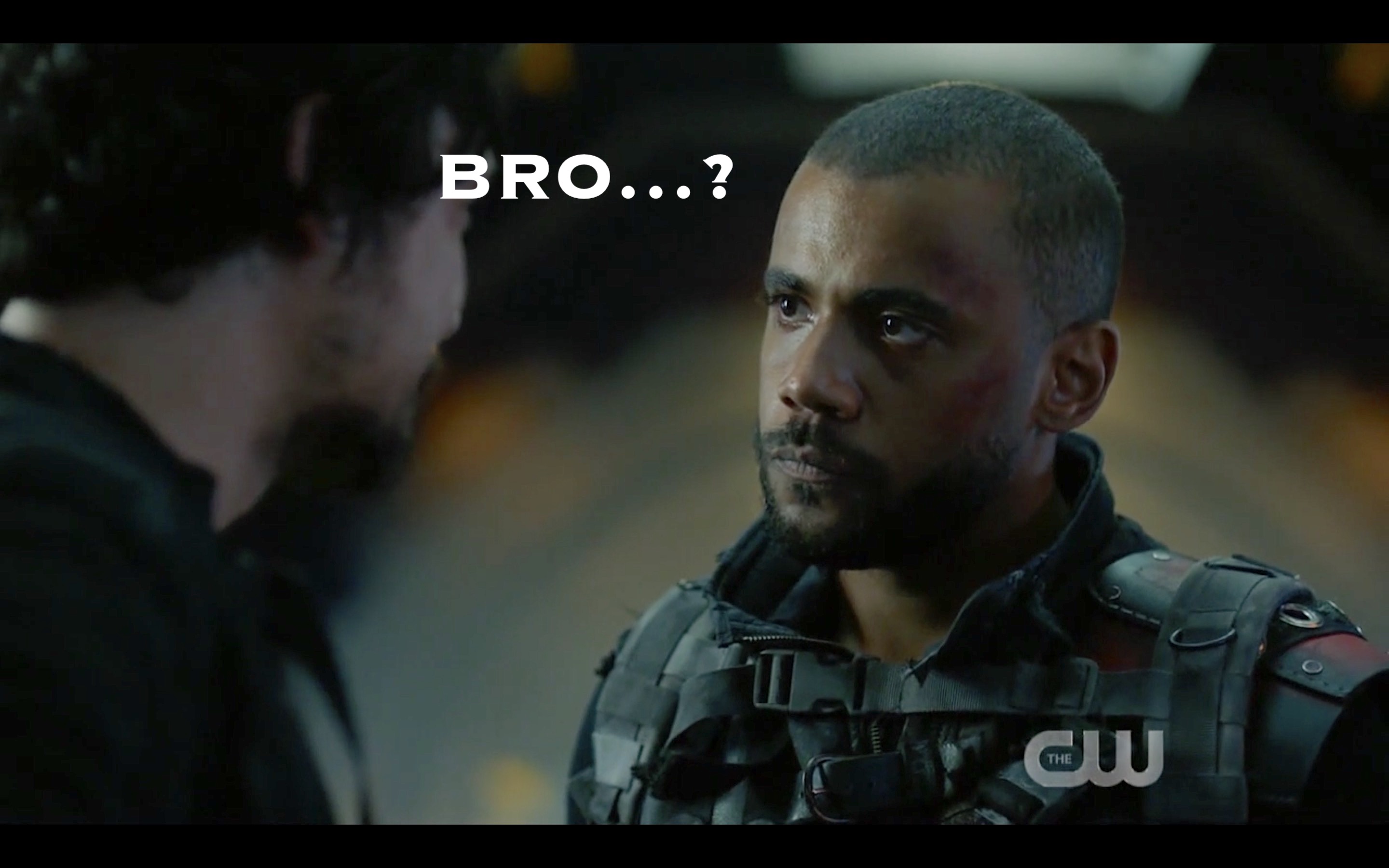 Miller was all, “so about that time I threw you in a pit to die…” and Bellamy was like, “ain’t no thing,” and my heart was like, “OMG IT’S HAPPENING!” If you’ve read my recaps from the start, you know how badly I want a bro for Bellamy, and how much I’ve loved this relationship from day the first. *happy sigh*