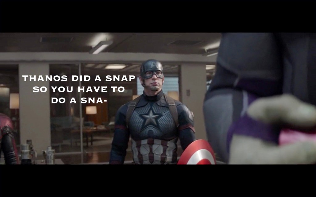 I just rewatched Endgame. I had the urge after WandaVision (did you see the it? soooo good, you’d be all ugly crying but full of wonder – if you recap it, I’ll give you all the ice cream!). Anyway, the thing I’m scratching my head about after the movie is: if past Thanos, his past minions and armies go in their future/the present of our heroes and DIE, he wouldn’t have been able to complete the Gauntlet in their past/his future. WTF? Wouldn’t most events orchestrated by Thanos be bascically erased from all the MCU movies? I don’t think it works, even if we posit they made an alternate timeline. Which is negated by the fact they put the hammer and all the Infinity Stones back where and when they got them. What do you think? Am I missing something?