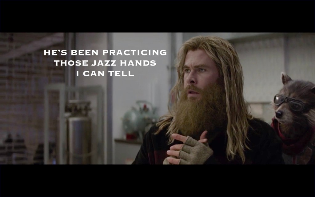 Meanwhile, Thor was having a bit of an emotional meltdown on Asgard and was little help to Rocket, who had to be the one to suck the reality goop from Natalie Portman.