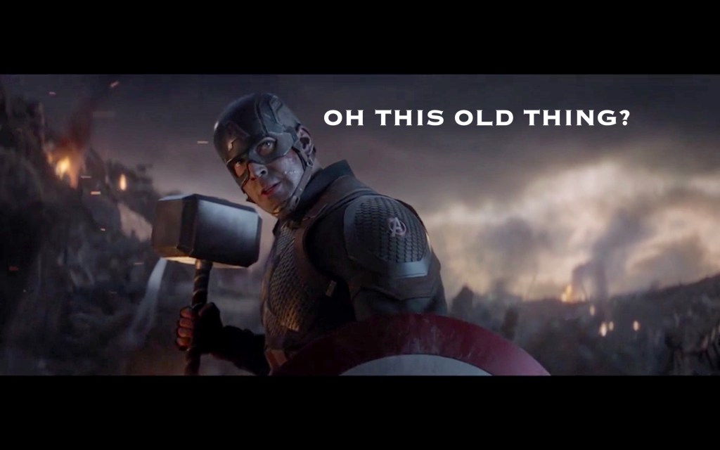 - LAST THING ABOUT CAP, I promise. It was very, very cool that he could use Mjölnir (yay!), but that shouldn’t mean he can shoot lightning with it, right? It was confirmed in Ragnarok that Muh-muh was just a conduit, right? It was never the hammer the lightning came from, it was the GOD OF THUNDER. It’s a nit-pick, but I’m pickin’ it!