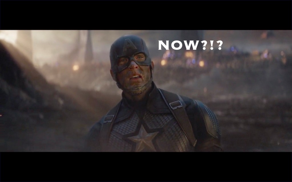 So now the boys are hurting, and Cap is standing alone, facing Thanos and his army, when…