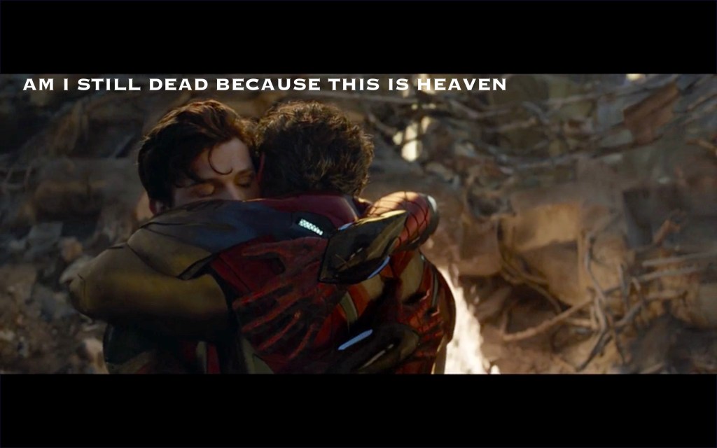 - The banging at the end of the credits was the sound of Tony making his first suit in the cave and- *wipes tear* I CANNOT.