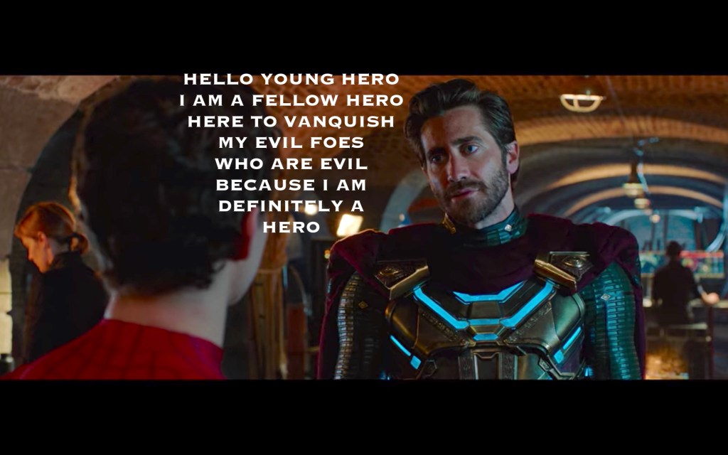 Mysterio effed Peter over from beyond the grave by editing the footage of the fight and making it seem like Peter straight-up murdered him so only HE could be “the next Iron Man”, using his words to EDITH to really drive the point home. THEN he revealed Spider-Man’s secret identity!! SUCH a superhero foul!