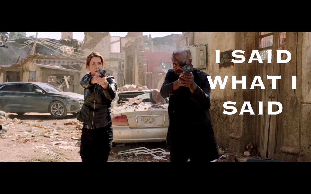 - Like I said before, I didn’t love that it wasn’t For-Realsies Fury and Hill. We rarely get to see those two interact, and when they do, it’s usually overshadowed by the bigger players in the room. I loved that we finally got to see into their relationship, the unwavering trust, the teamwork, the shorthand. That moment when he was all, “you got me?” and she was like, “I got you,” was brilliant. The fact that it wasn’t actually them undermind a lot of what made this movie great for me.