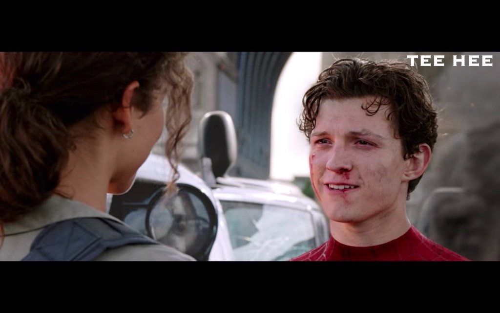 Peter declined the man who was definitely Fury’s offer to do some heroing because he just wanted to have fun on his school trip, and felt he was a bit out of his depth with the whole magical-monster situation. This is a pretty big contrast to Homecoming where all Peter wanted to do was hero all the time. I guess that’s what happens when you help win a war against an intergalactic supervillain. Perspective.