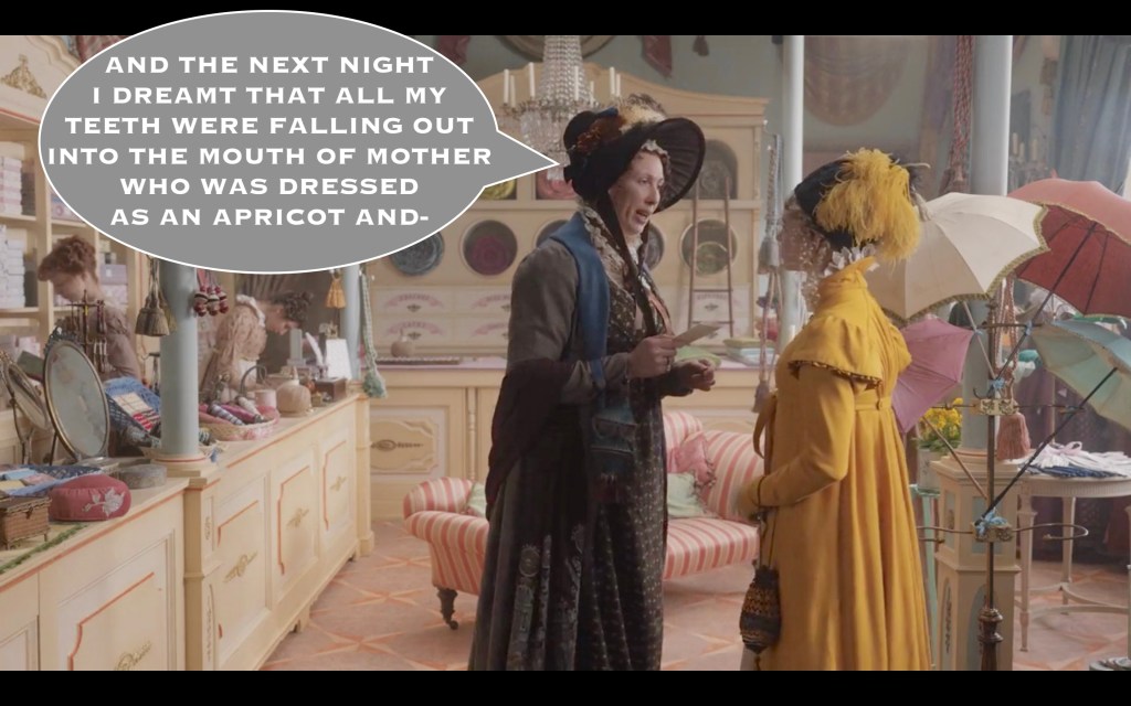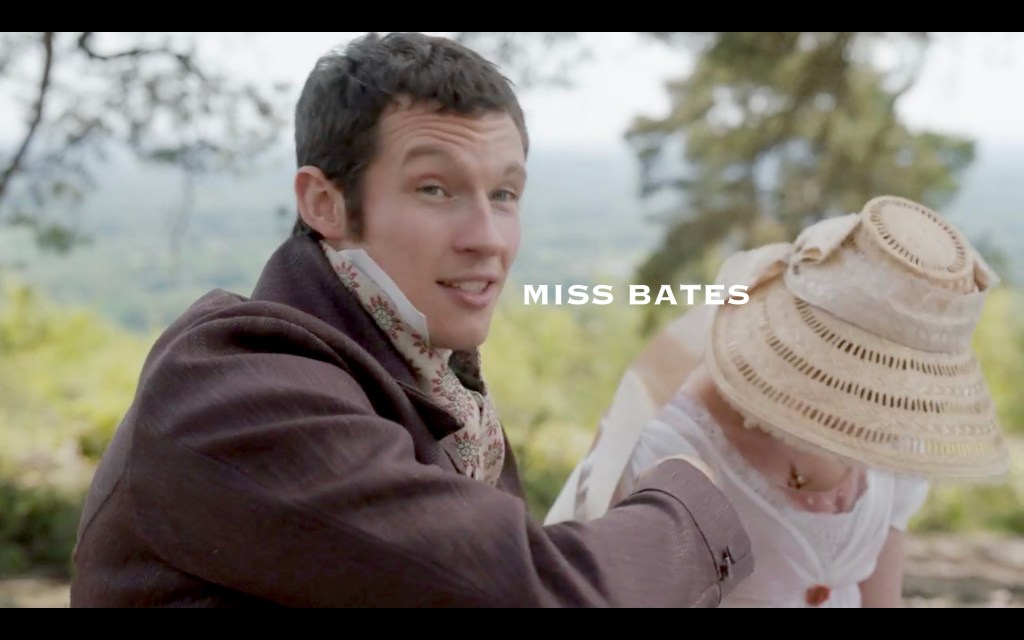 Emma and her New Toy ran into Miss Bates (played effing brilliantly by one my favourite actors Miranda Hart), and she told them all about her niece Jane Fairfax; a topic Emma wasn’t super duper thrilled about.