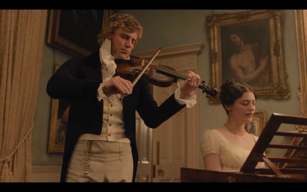 Then Jane and Mr. Knightley did a duet with her on the piano and him playing a violin, and they both sang, and I nearly had to excuse myself.