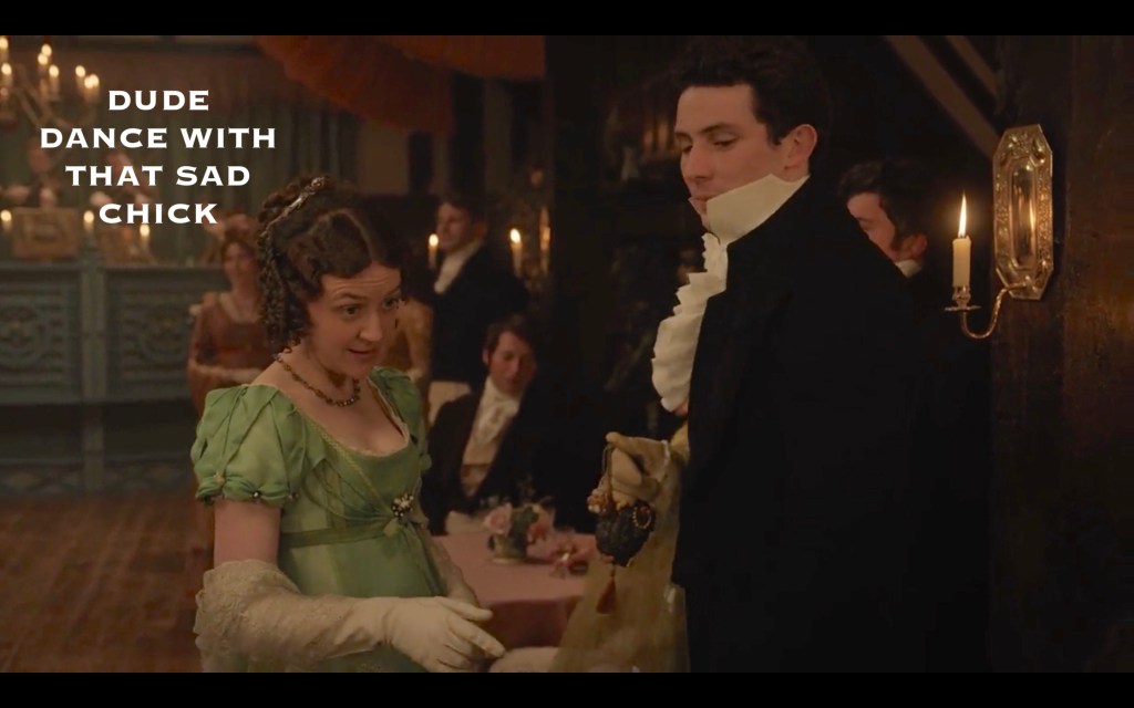 Elton very rudely refused to ask Emma’s New Toy to dance, so Mr. Knightley asked her instead. It was all such fun, and everyone took a train to flirt town, eliciting some sexy feelings that they were unprepared to deal with, ESPECIALLY when Emma suggested Mr. Knightley ask HER to dance.