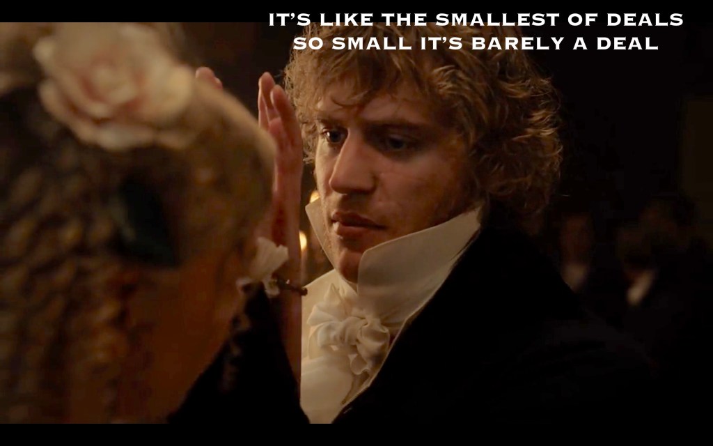 Frank was secretly engaged to Jane Fairfax! He was the one who got her a pianoforte, and he came to town not only to visit with his family, but to continue their secret liaison! Oh the absolute SCANDAL of it all! But more importantly, this meant Emma had to break the bad news to her New Toy about another heartbreak.