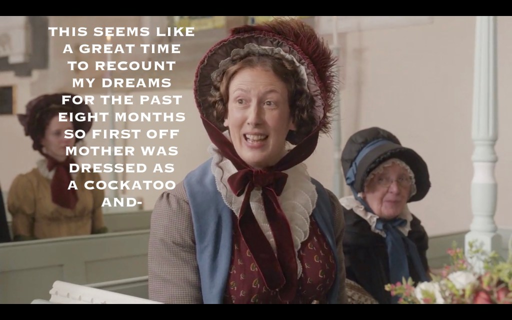 Elton went and got himself married in a matter of weeks, and his new wife sure was something. First she sat in the front pew, then she visited Emma and prattled on about someone else’s house, then had the STRAIGHT UP NERVE to call Mr. Knightley as simply “Knightley”, like some kind of overly-familiar boob.