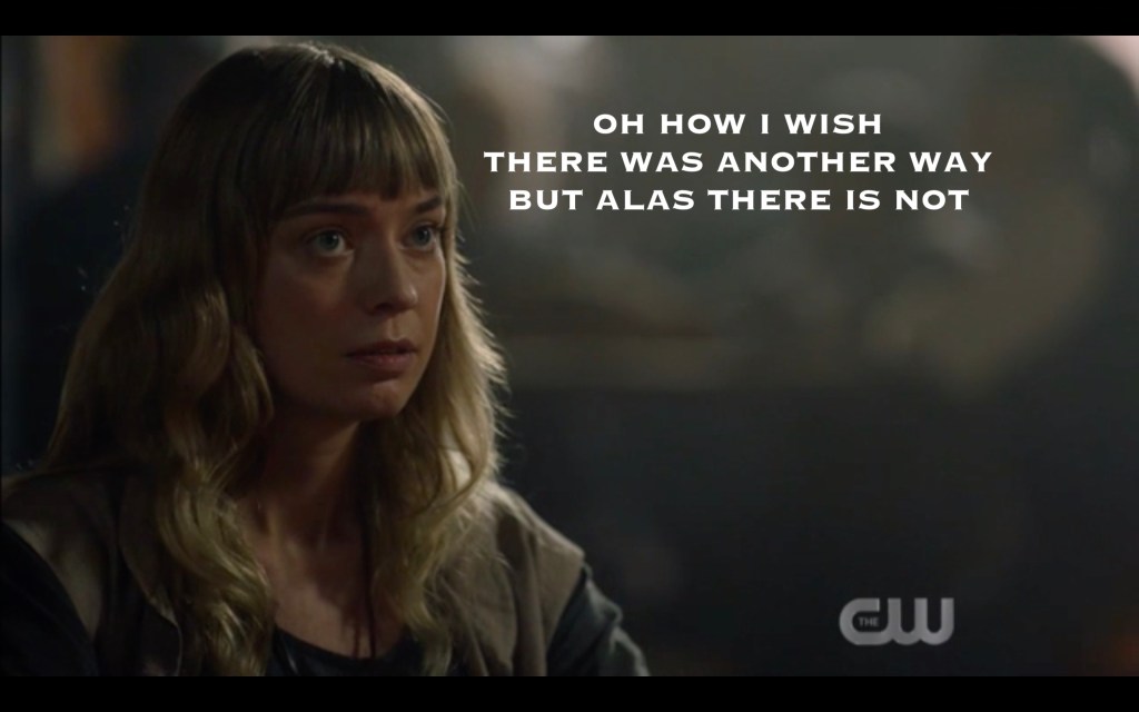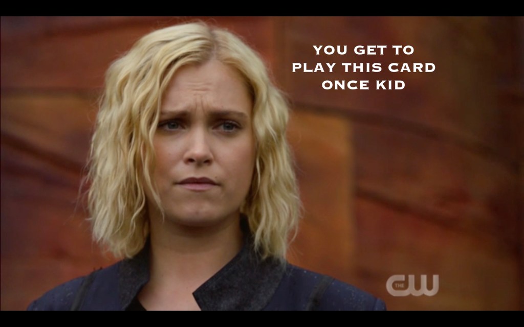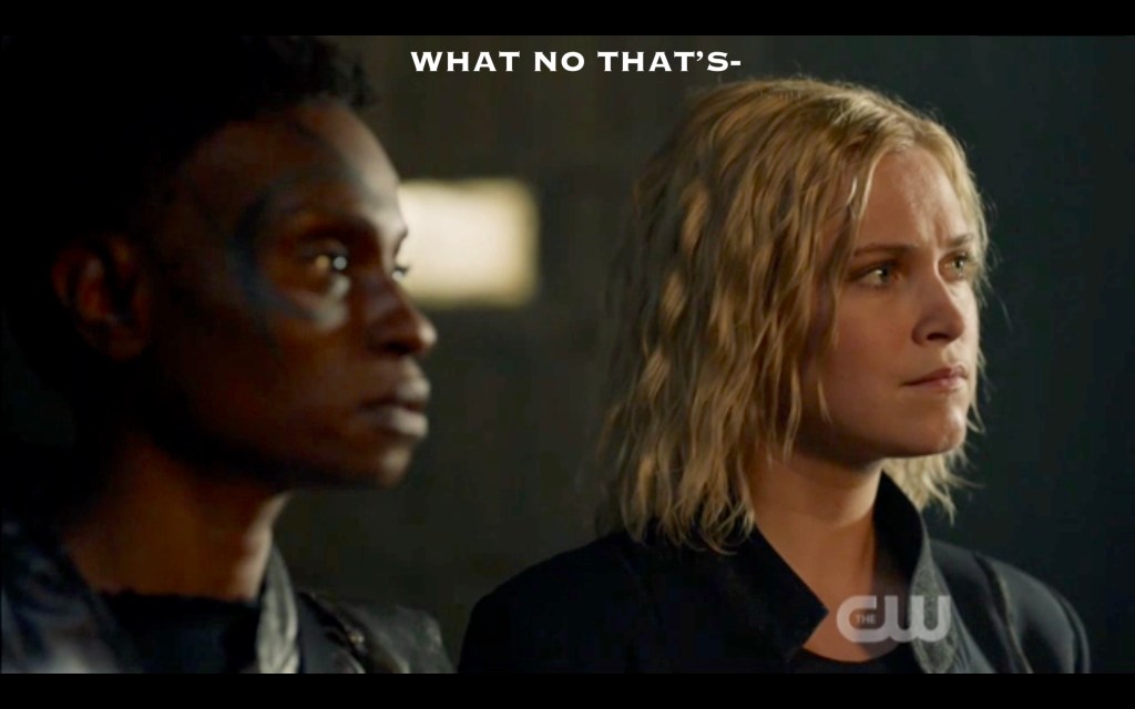 The Raven Murphy Emori bit. Quite perfect captioning. Also I love Emori. Like Echo so underatted and I don’t know why. Both been around since season 2. On this show that’s quite the feat.