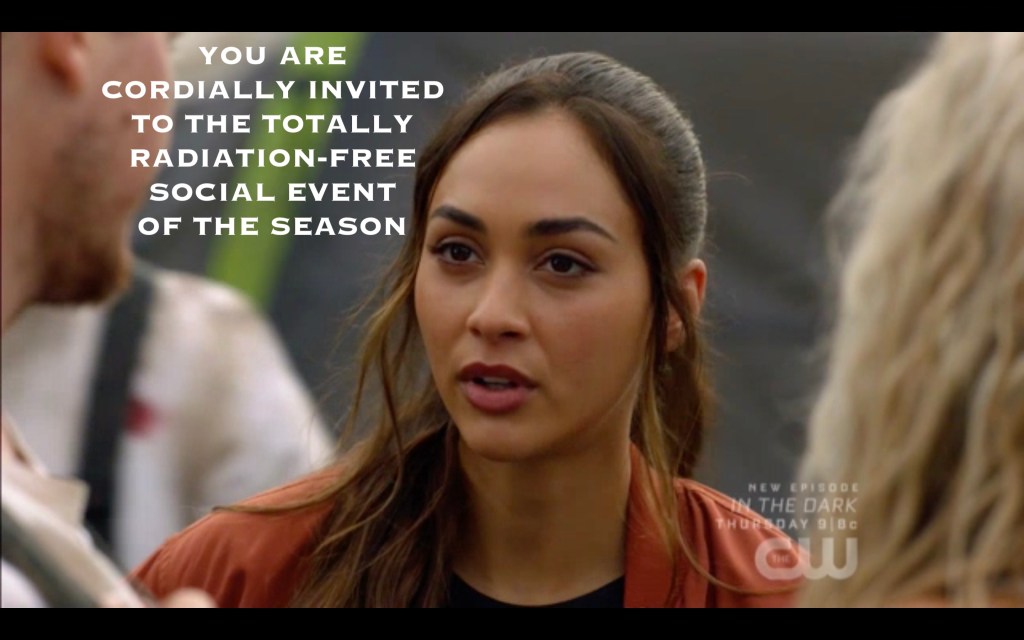 Raven partook of her favourite pastime – barging in on her pal’s sexy times in order to further the plot. Remember that time she busted in on Monty and Harper?? *sigh* *wipes tear* What were we talking about? Oh right, the impending radioactive doom…