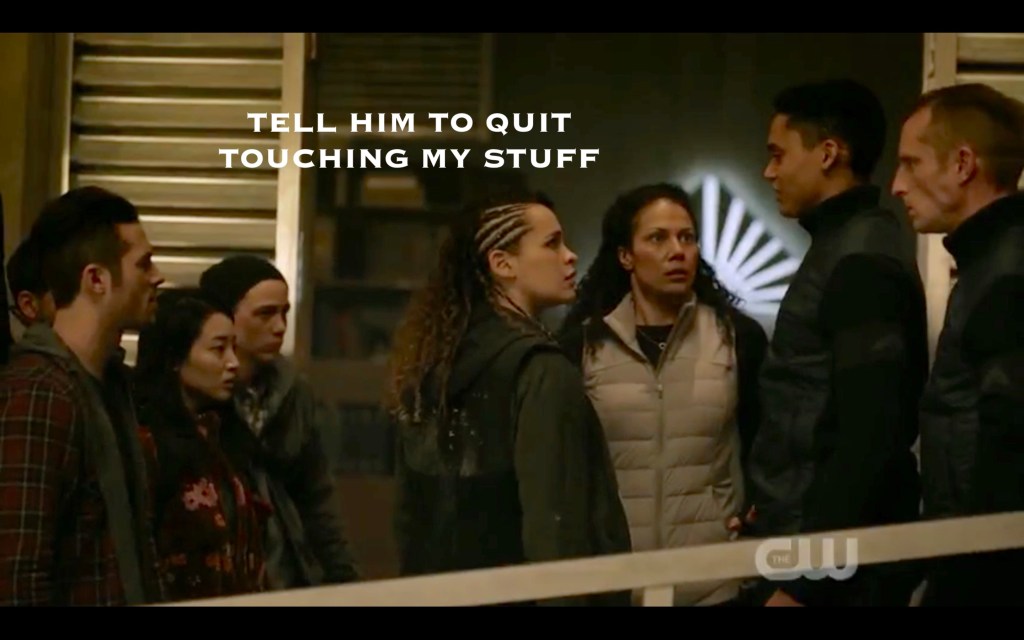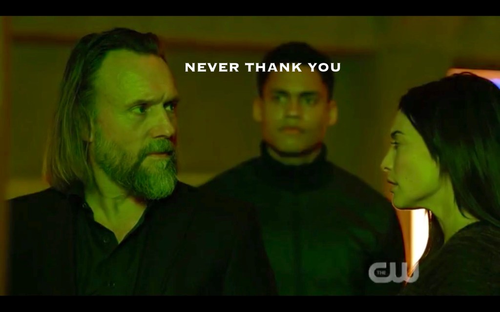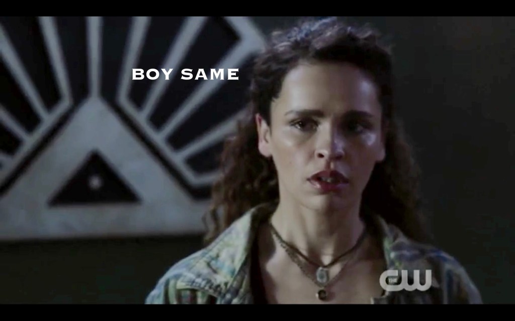 I have some (so many) questions – so the Bardonites think Clarke still has the flame inside her noggin, right? Because Levitt only made it to season 3 of his binge-watch? That means that Gabe (who very pointedly mentioned it to Clarke) has been lying to them the whole time (that boy knows what is and is not shoved into the back of her brain stem!). It also means they haven’t memory-binged Octavia anymore. Innnnnnnnnnteresting. (Or am I totally wrong?)