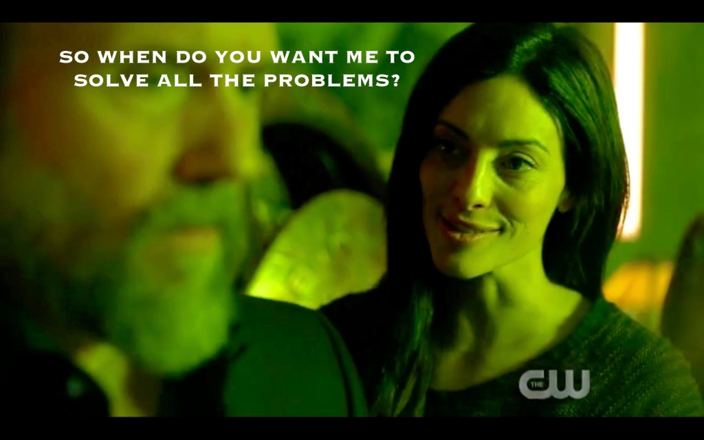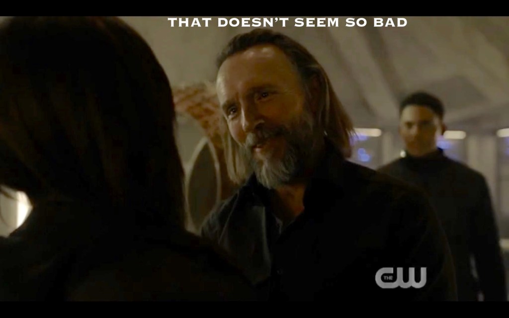 Then Call Me Bill shoved his ex into the veranda and left her to fend for herself on a radiated planet without nightblood! What a grade A assface! Ugh, at least this means we’ll get more Callie’s Cool Mom in the prequel. Exactly how did Reese feel about it? I hope we find out! Anyway, Callie and the future Grounders (if that’s not a great band name, I don’t know what is), headed into the wilds of a radiated wonderland, while Call Me Bill walked headfirst into Bardo and a possible Crystal Giant-themed apocalypse 3.0.