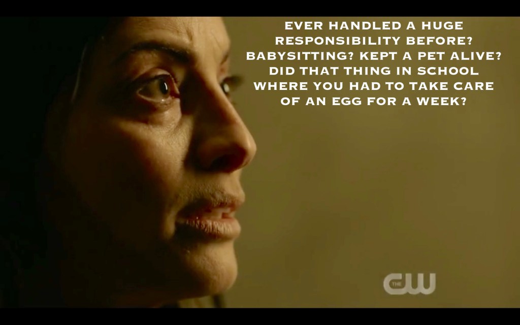 Becca was like, “keep this flame for me,” and Callie was all, “KEEP the FLAME, eh? Hmmmmmm.” And Becca was like, “yeah, that’s what… um, did I say it strangely?” and Callie was like, ‘you said it PERFECTLY,” and Becca was all, “you’re making this weird.” [If Callie didn’t suction that thing into her own neck then at the very least she was the first Flamekeeper, VERY COOL]. Anyway, Reese read Becca’s diary (RUDE) and found out about the flame, so Becca made Callie pinky-swear to get it back and decide who should be the next leader of the human race, NO PRESSURE.