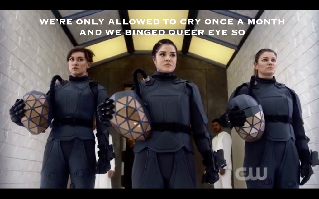 Back in season whatever when we learned of the Grounders’ culture, or when Ipadicus first showed us a zany cult leader, or when BunkerKru first inhabited their cult-digs, or when we learned about Becca and the bombs and Polaris and the first commander and the flame and witch-burning and a made-up language and *gasping breath*… did you ever, in your wildest imaginings, predict something like THIS??? The meticulously detailed world-building this massive feat took… I just. *vigorous nodding* YES. Even if this prequel series never comes to fruition (which it absolutely should), this episode on its own was a marvelous seasons-long payoff that deserves all the ice cream. Anaconda just had to be so damn awesome that I guess I’m hooked forever?