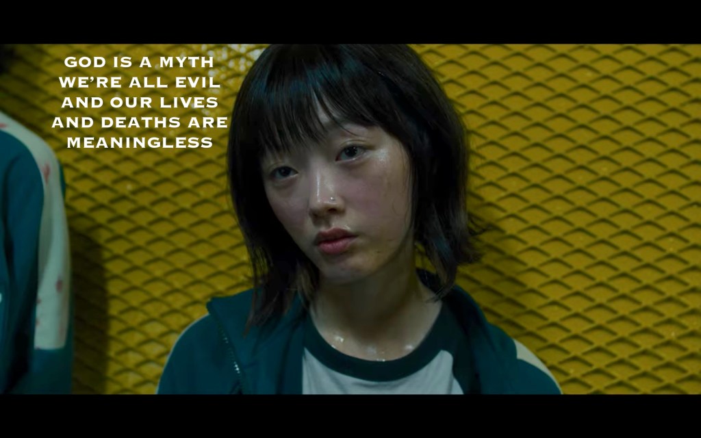 Oh Gihoon, you sweet boy. He actually thought he and his new best gal pal could walk out of there together and split the money to genuinely make their lives and perhaps the world better. Saebyeok’s gaping wound had different plans, and she passed out after asking him to take care of her brother (girl knew). As Gihoon was screaming for a doctor (sweet beautiful man), Sangwoo went ahead and slit her throat.