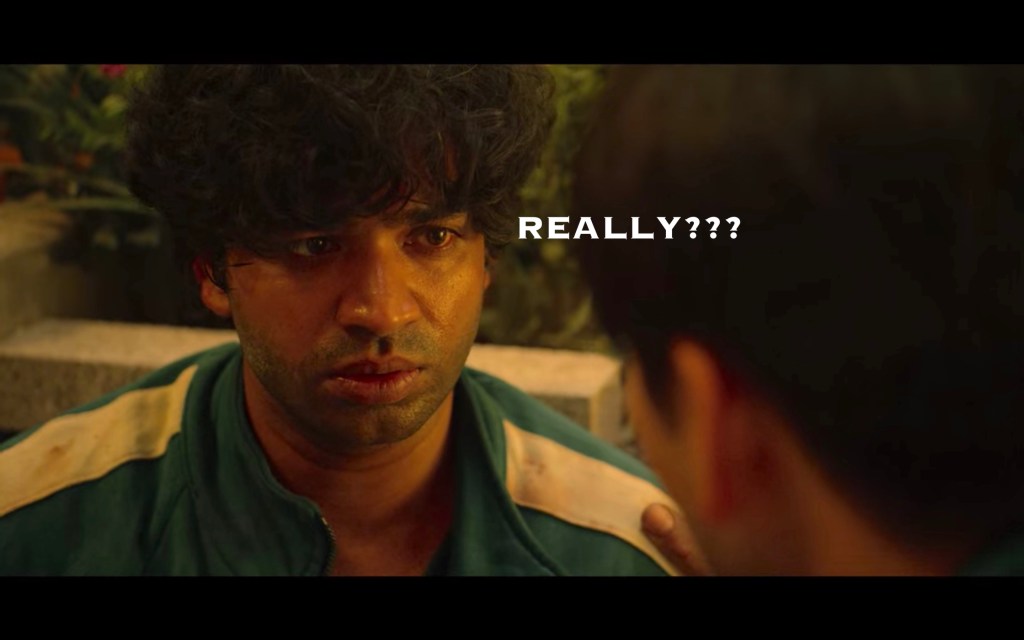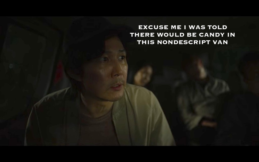 And I DO agree with his decision not to get on the plane (even though, yes, I want him to finally be a good dad). But like… logistically… we all know the Senior Squids would be able to take that plane down. I know they likely wouldn’t have, but if I were Gihoon, the doubt that I’d make it there safely would be enough not to get on. I know that’s not why HE turned around. HE turned around because of his aforementioned heart of gold and an ill-advised dream to take down some rich kids. But either way, I’m with you, Gihoon! Except for your hair choices!