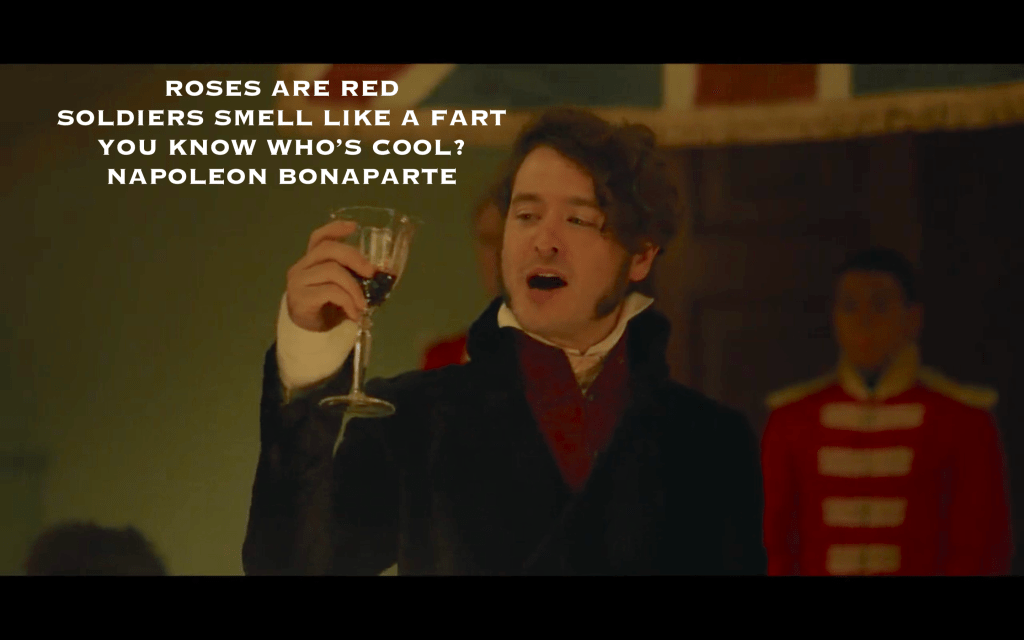 Lockhart caused a commotion at the soldier ball by commending Napoleon for abolishing slavery, and Georgiana was like, “hmmmmmm, okay, okay…” and you guys… I don’t know. What are your thoughts?