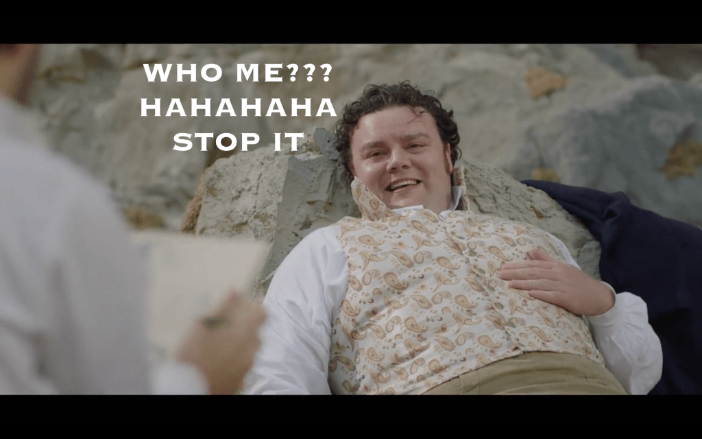 Speaking of people enduring it while their crush gushes about THEIR crush (Sanditon loves this trope, and I once again wish Stringer well in London, I hope that dreamboat is THRIVING)…