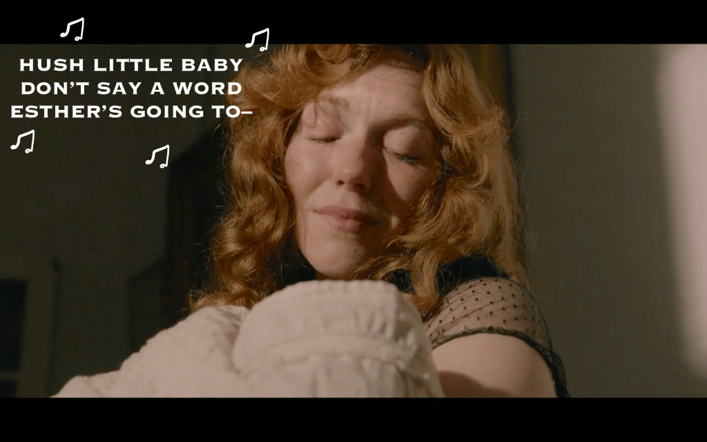 After an episode at the ball, Esther took George for a nice lil’ snuggle, and everyone FREAKED OUT. Sir DickLips put on a theatrical piece about how Esther was going to harm the baby, Clara just seemed straight-up concerned that a drugged person was holding her child, and Lady D got caught up in the drama of it all. Watch that scene without the creepy music and it’s just a lady holding a baby. Nothing to see here, folks!