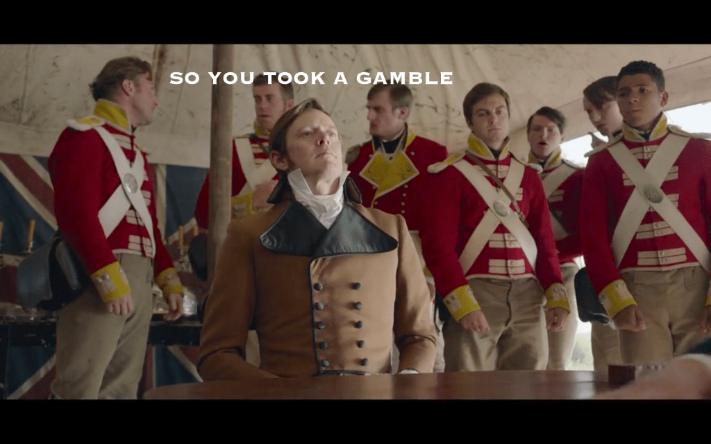 • Um… did the soldiers know what they were doing to each town they abandoned, or was that just Colonel Lennox? They all gathered around to watch the card game, but did they know what they were playing for? Doesn’t seem like Fraser would be cool with ripping off town after town.