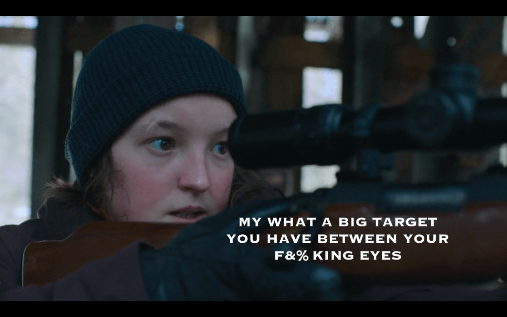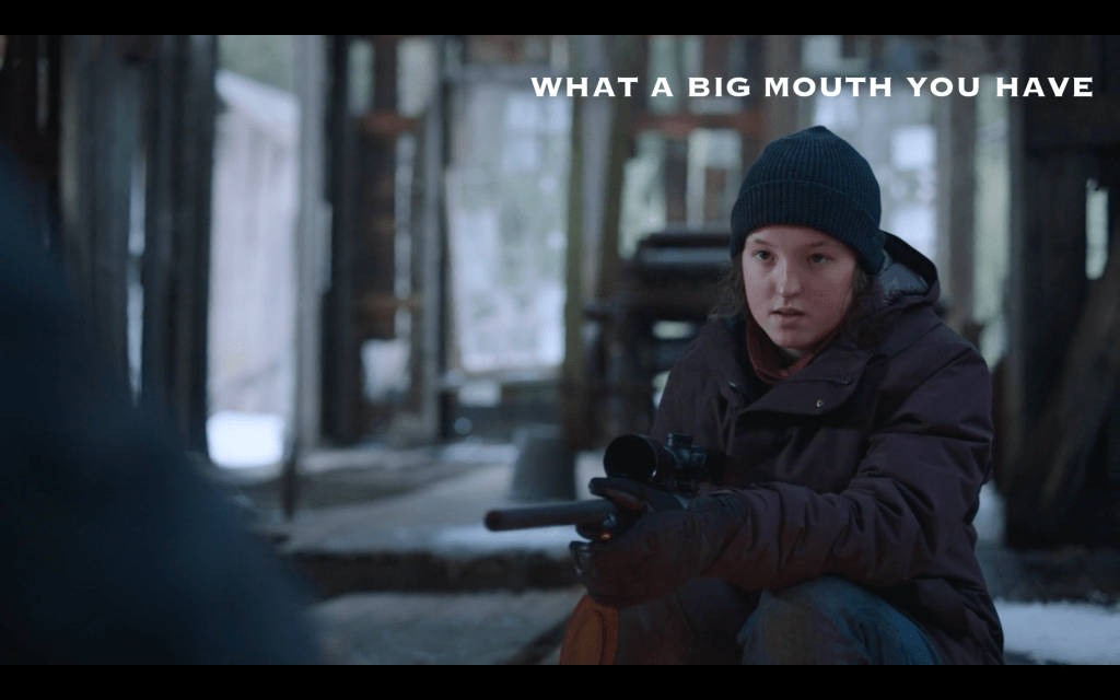 So do we just mail Bella Ramsey all the awards? Do they have a P.O. box big enough? Emmy, People’s Choice, Spelling Bee, whatever, they get them ALL. Of course I loved them as wee Mormont, and I’ve been enjoying them as Ellie, but this episode launched them into my heart as one of my favourite actors forevermore. Their screams, sass, that HUG, and everything leading up to it, just… *Robert Redford nodding gif*