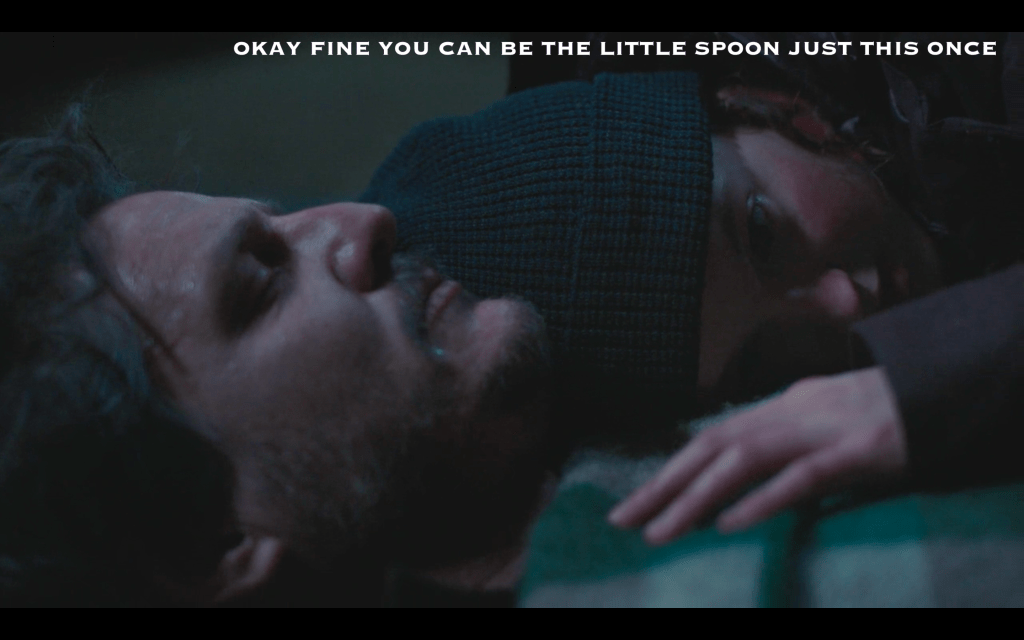 Baaahahahahaha this dude was SO happy to be murdered by Joel! I mean, I get it, who could say no to that man’s touch, but I think I’d draw the line at being stabbed in the neck, probably.