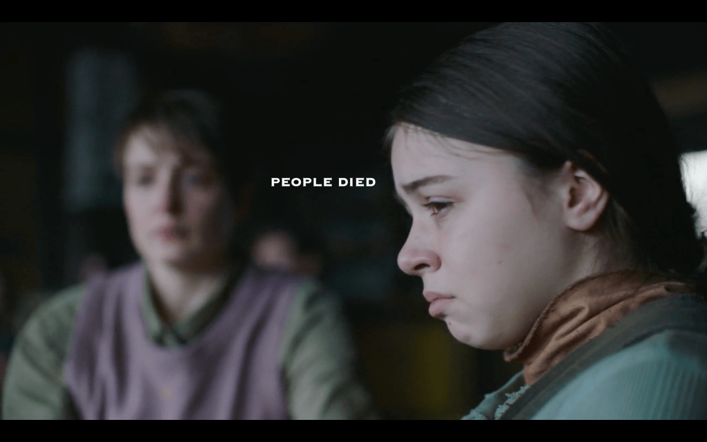 - If the dude who hit a home-run into Joel’s stomach was just out looking for food for the cult, why did he attack Joel and Ellie? Was he going to steal the horse to eat, or just generally steal what they had? It’s an interesting look at “them” vs “us” – the man attacked first, yet Joel was branded a “crazy man” because he won.