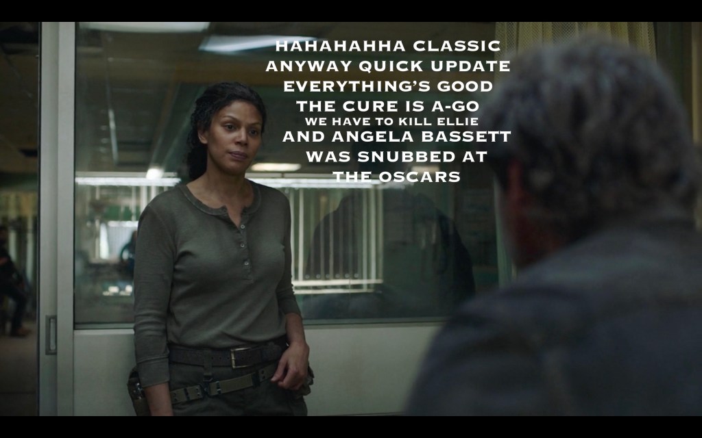Joel and Ellie were minding their own business, casually pal’n and pun’n, when someone set off a wiz bang and Joel woke up in the hospital. But everything was fiiiiiiiiine because it was just the Fireflies! And all they wanted to do was cut open Ellie’s head to harvest her brain-mushrooms, and calmly and collectedly escort Joel to the ‘outskirts’. No big!