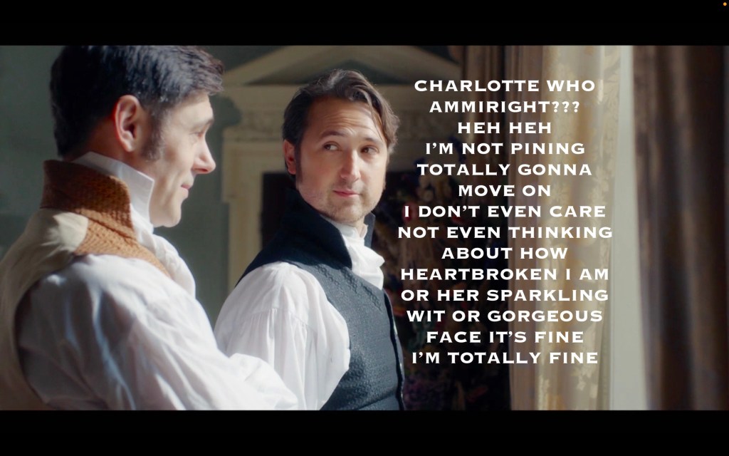• Okay, so I harp on Tom’s character a lot (WITH GOOD REASON), but it’s only because of the wondrous possibilities that character could have held. The missed opportunities – we were SO CLOSE – to having something amazing with him, to see his character grow and change over the course of three seasons. Obviously a team-up with Mary would have been preferable, but also imagine Tom being the #1 Charlotte/Colbourne shipper? Imagine if he threw his efforts into making sure she was happy, considering he knows he’s the one who ruined her happiness in season 1?
