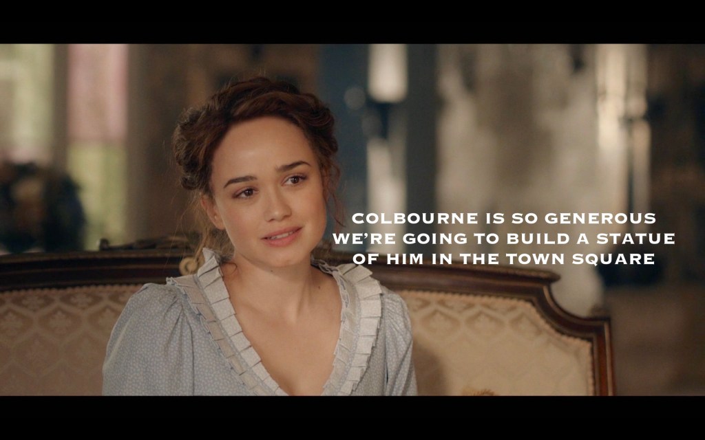 I wanted more time between the brothers Colbourne to mend their relationship, more time with Charlotte and Colbourne to show how his confidence and attitude had changed from last season, more time with Lady D and Sir FartBreath to make his turn more believable by the end, more time with Georgiana and Otis to quell any lingering doubts from season 1 and build up their chemistry, more time with Arthur and Harry JUST BECAUSE.