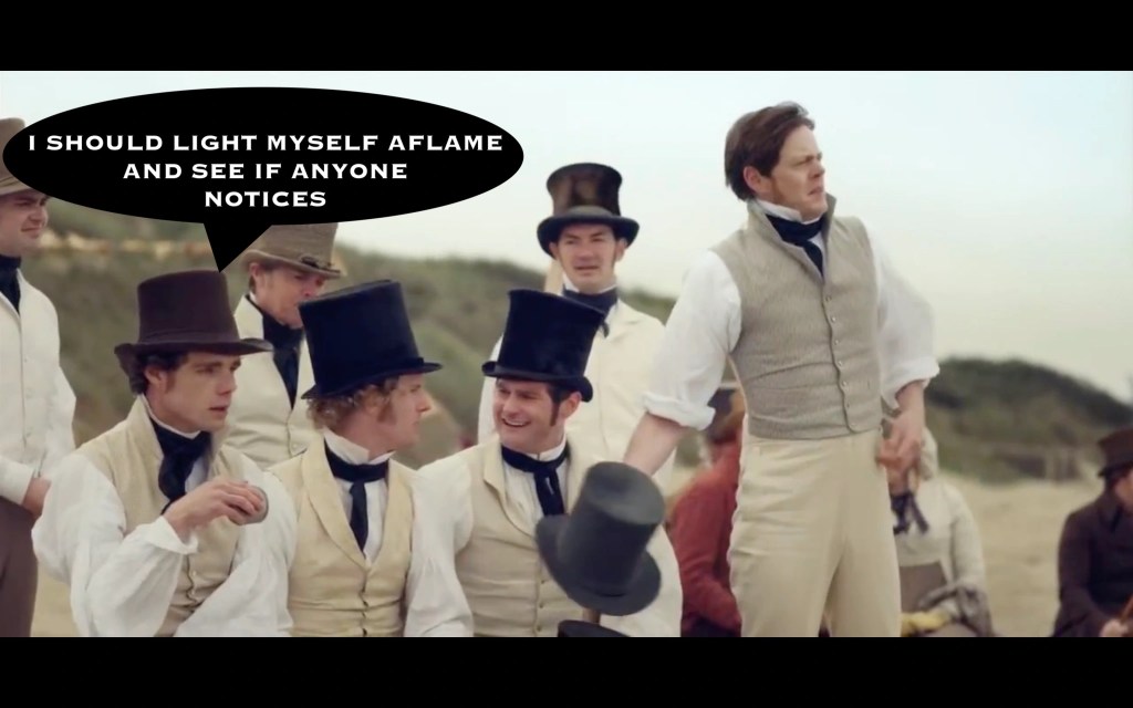 • For real, though, Georgiana, Otis, Arthur, Harry, Charlotte, and Colbourne, all at the cottage, roasting marshmallows over a fire, Colbourne being deeply uncomfortable socializing while Charlotte helps him to open up, Harry and Georgiana getting drunk and choreographing a dance together, then Arthur and Otis have to carry them to bed. This is not fan-fiction, this is WHAT HAPPENS.