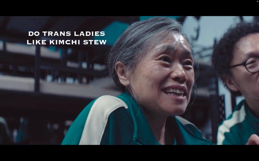 My death predictions for the next episode are as follows: Hyunju’s Little Sister but not Hyunju herself, Bestie (sorry Gihoon, but don’t reminisce with someone about your long history before a murder game!) and Made-it-through-the-Korean-war Mom. Her saying she wouldn’t have a reason to live without her son is NOT GREAT FORESHADOWING, LADY! (don’t tell me!) (these people are fictional, these people are fictional…)