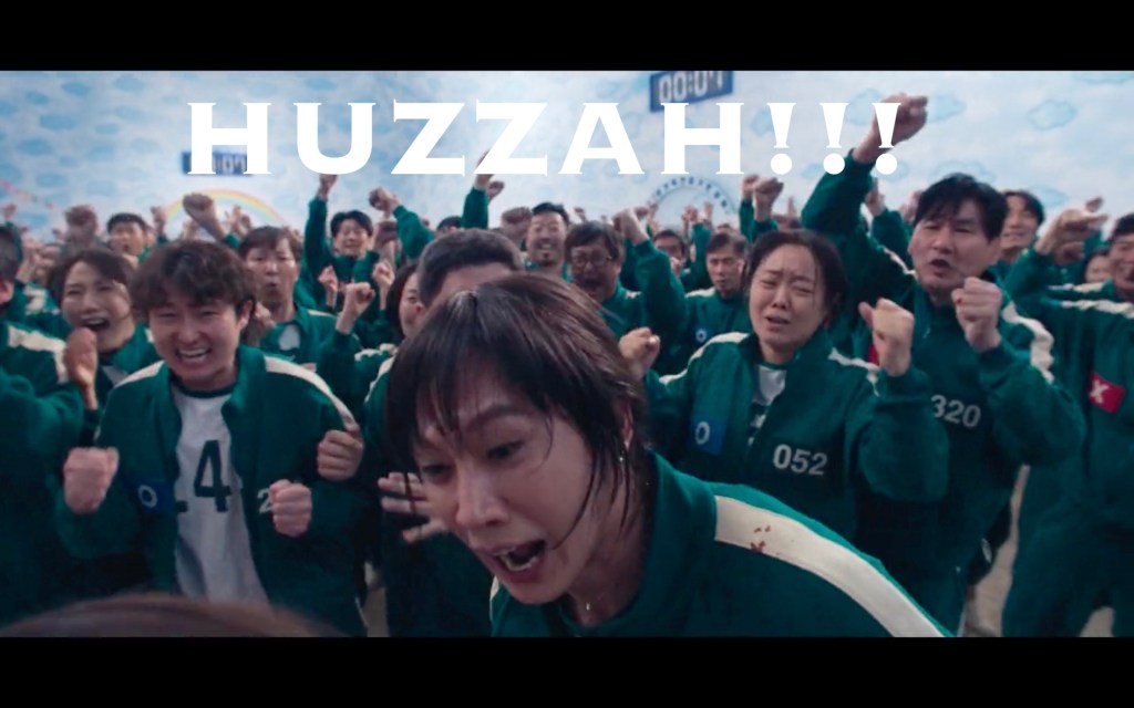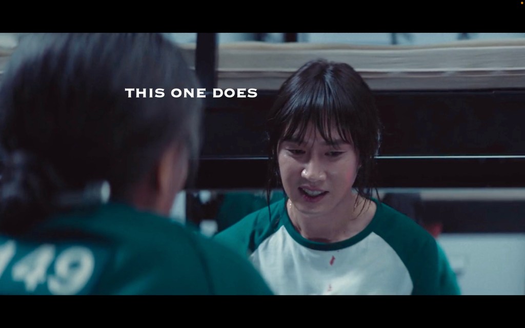 I know the other players were cheering partly because they learned tips and tricks with every win, but there was also an element of joy and support that we didn’t really see en-masse in season one. Everyone turning around so Hyunju could play hackysack… they’re playing a murder game where they get more money the more people die, and these people turned around to give her a better shot. I know I’m on repeat with this, but I’m honestly loving these little moments of human decency this season.