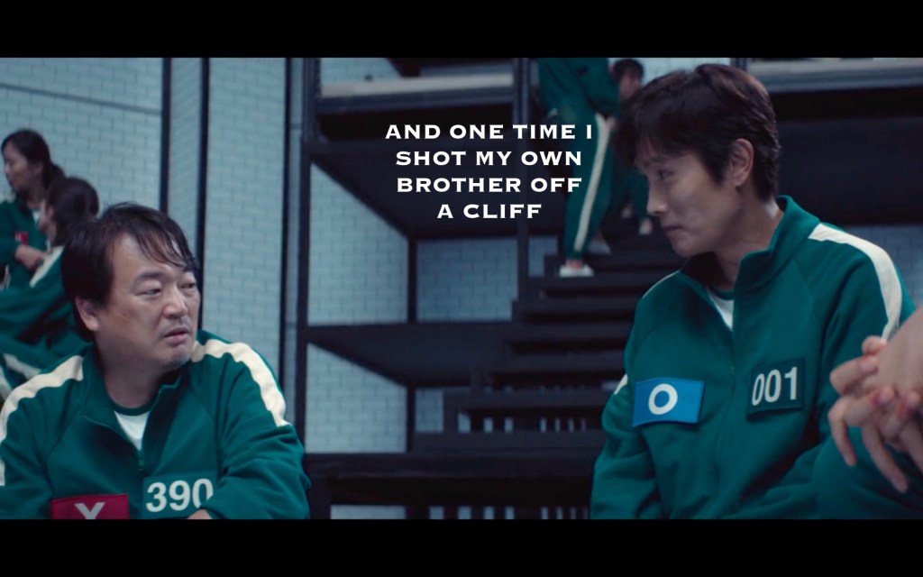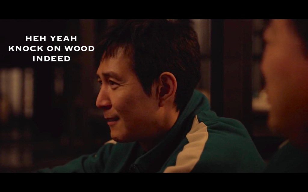 Fake 001 wasn’t just playing with Gihoon, he was playing with ME. What was this?? Was he just trying to build suspense? Was he messing with them? Was he genuinely freaked out from his own Game PTSD? It can’t be that he wanted them to fail because in the end he saved the day by helping Jihoon hacky his sack.