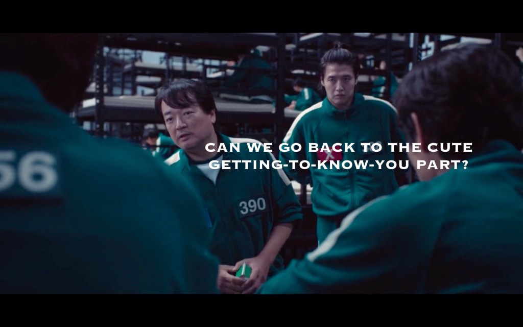 - Correct me if I’m wrong, but would voting to go home actually work? Last season they convinced most people to go back, then they tracked anyone who *didn’t*. Did those people survive? Are they just out there blabbing when they’ve had too much soju? I doubt Squid Admin would be cool with that.