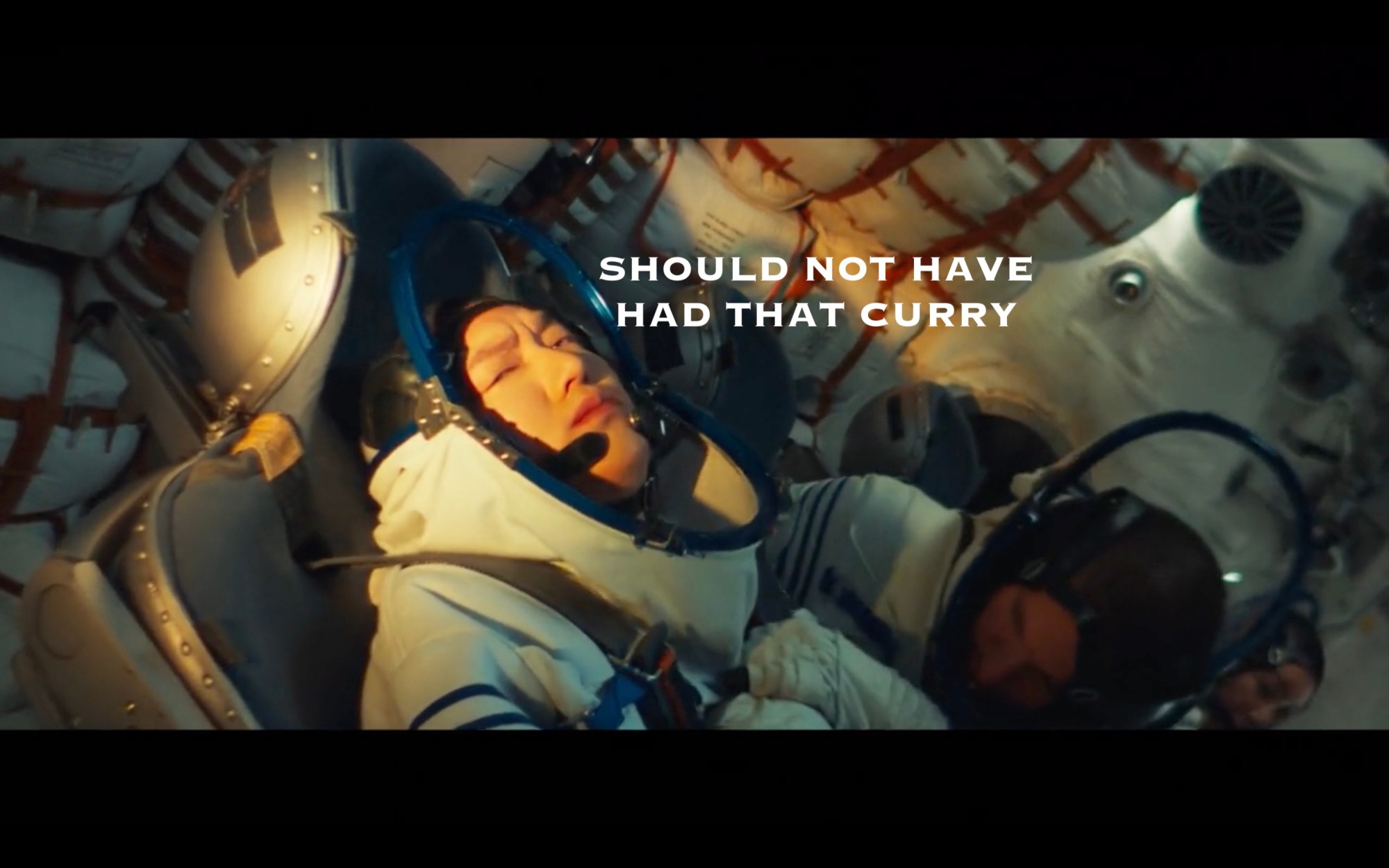 I loved that the show started with the launch and then went back with a ‘FREEZE, yeah, that’s me, you may be wondering how I got here…’ trick. That way, we didn’t have to sit through an episode of their backstories before getting to the good stuff. And by ‘good stuff’, I apparently mean the rocket taking off, getting hit with lightening a bunch (so cool) and Ryong’s vomit floating around the cabin as if a child was blowing bubbles.