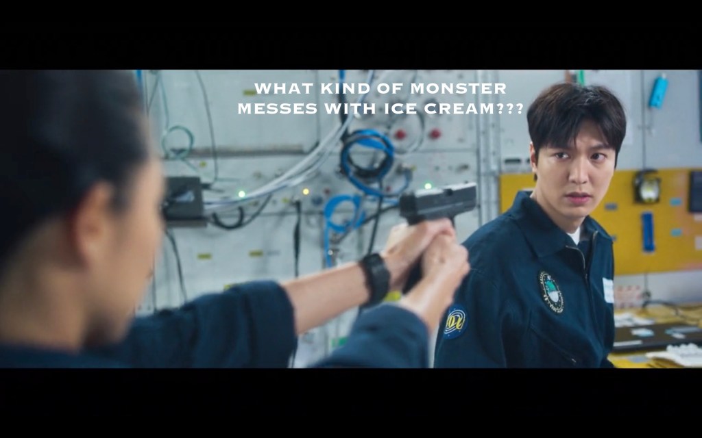 In a very sneaky move, Ryong transported his future sister-in-law’s eggs to space in the bottom of a vanilla ice cream cup. (Re-read this sentence and tell me K-dramas aren’t written by chaos demons). But oh dear, Eve took the vanilla to melt and test it, then crumpled the cup. THE HORROR!