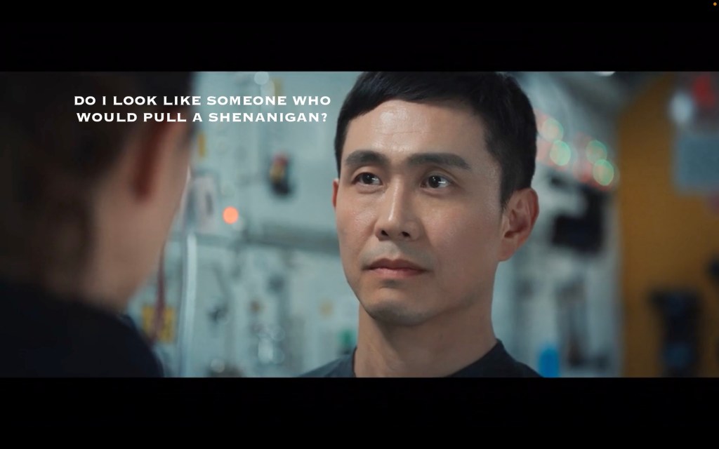 Santi convinced Dr. Lee to join the mutiny party, and Dona joined later when Eve almost caught them. So now Eve is the only one in the station who isn’t in The Egg Thing club, and I honestly, this is what upsets me the most? Is that weird? They’re all leaving her out and going behind her back, that’s so hurtful and mean and– oh shit, am I accidentally working through some childhood trauma? Whoopsie! Sorry, moving on.